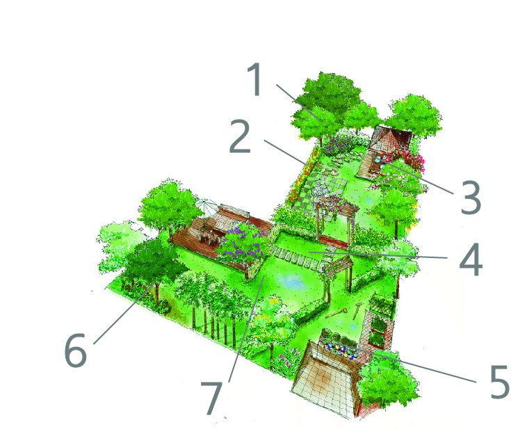 3. ศาลายังเป็นอีกมุมหลักที่จะได้ใช้งาน ทั้งหลบเข้ามานั่งเล่นชมธรรมชาติยามฝนตกพรำ ซึ่งเราอาจทำชายคาหรือกันสาดยื่นออกมาจากศาลา หรือขึงม่านพลาสติกใสเพื่อป้องกันฝนสาด ต้นไม้ใหญ่ที่ปลูกใกล้กับศาลาก็ไม่ควรมีกิ่งเปราะเกินไป เพราะอาจหักลงมาทำให้หลังคาเสียหายได้