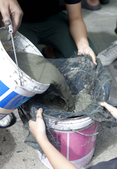 4.นำผ้าขึ้นจากน้ำมะเกลือ และแช่ลงในน้ำโคลนเพื่อฟิกซ์สี เป็นเวลาอย่างน้อย 30 นาที