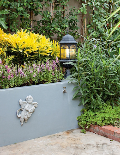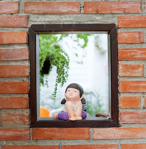 แต่พอเดินผ่านซุ้มประตูเข้ามาในสวนกลับต้องประหลาดใจเพราะกลายเป็นสไตล์สวนที่ผสมกันระหว่างความเป็นโมเดิร์นกับอิงลิชคอตเทจที่ดูกลมกลืนไปด้วยกันได้อย่างไม่น่าเชื่อ คุณป๊อป – กังวาล ฝั้นคำปวง ออร์แกไนเซอร์หนุ่มรักธรรมชาติ เล่าให้ฟังถึงความเป็นมาของสวนว่า