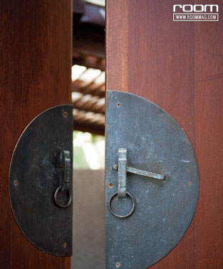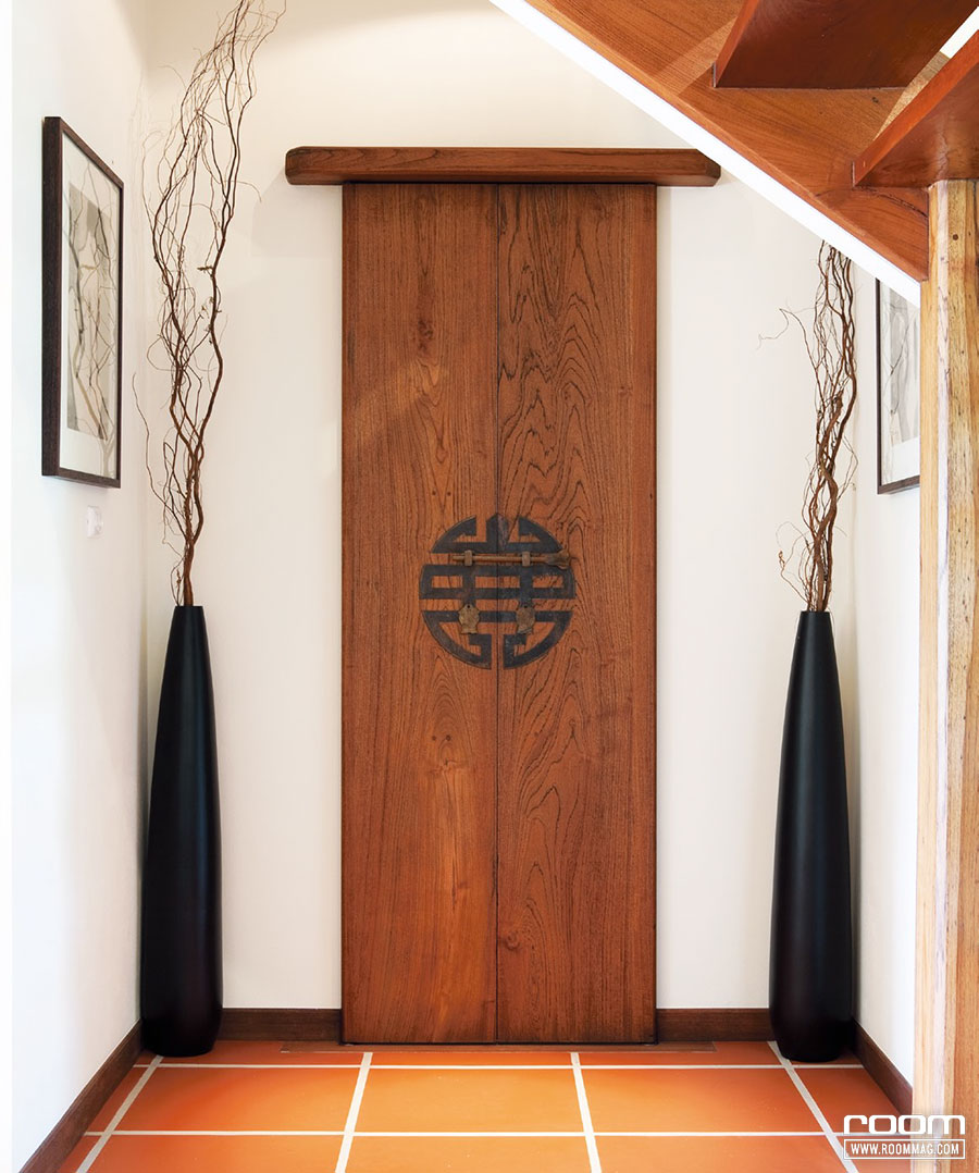 หากคุณมีงานไม้เก่าหรืองานศิลปะที่มีรูปทรงจับกระชับมือ สามารถนำมาทำมือจับประตูที่สวยแปลกตาได้เช่นเดียวกับบ้านหลังนี้ โดยนำสากไม้ตำข้าวเปลือกมาต่อเข้ากับแกนไม้แล้วใช้นอตยึดลงไปบนบานประตู เท่านี้ก็ได้มือจับแบบสวยเก๋แล้ว หรือจะประยุกต์นำกิ่งไม้ฟอร์มสวย เนื้อไม้แข็งแรง มีขนาดเหมาะมือมาใช้กับไอเดียนี้ก็ได้