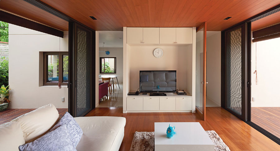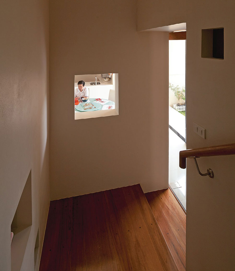 บ้านหลังนี้มีความพิเศษที่ช่องเปิด เช่น ประตูและหน้าต่าง สถาปนิกออกแบบให้อยู่ในตำแหน่งที่สัมพันธ์กันทั้งด้านการมองเห็นและความรู้สึก จากห้องหนึ่งสู่อีกห้องและอีกห้อง รู้สึกได้ถึงความมีชีวิตชีวาที่อยู่รอบตัว เมื่อเราอยู่บนห้องนอนก็ยังมีช่องที่มองออกมาเห็นโถงบันไดได้ หรือจากโถงบันไดก็มีช่องไว้มองว่าใครอยู่ที่โต๊ะอาหารบ้าง