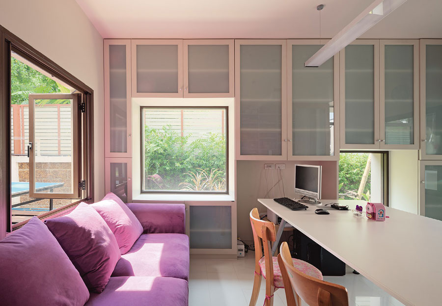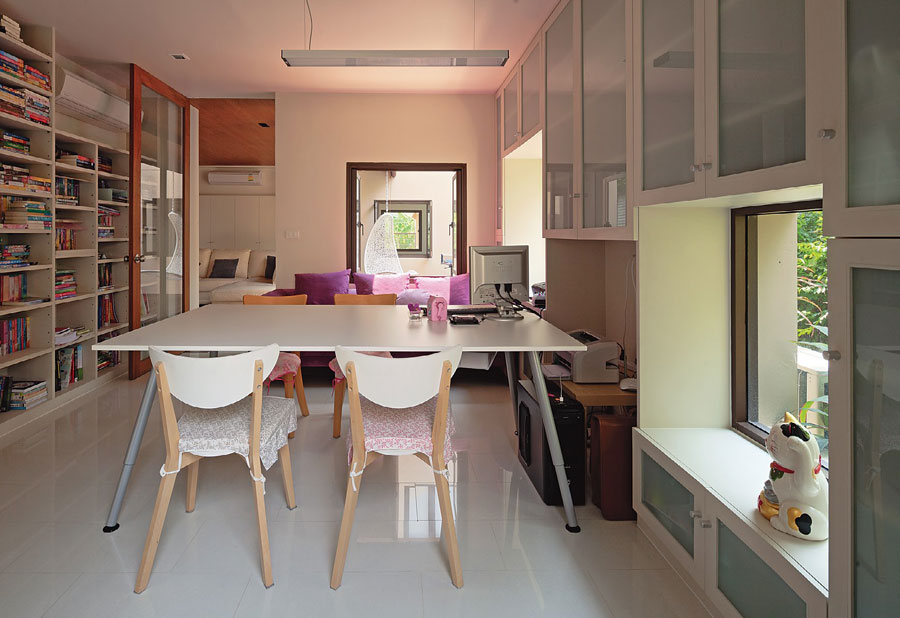 สถาปนิกบอกกับเราว่า “การออกแบบในช่วงแรกเป็นการหาตัวตนของเจ้าของบ้านว่าชอบอะไร ไม่ชอบอะไร ซึ่งเป็นสิ่งที่เจ้าของบ้านหลายคนไม่สามารถบอกได้ตรงตามความต้องการจริงๆ เจ้าของบ้านหลังนี้ก็เช่นกัน เราจึงนำรูปบ้านสไตล์ต่างๆมาให้ทั้งสองท่านได้ดู และให้ทั้งคู่กลับไปทำการบ้านแล้วกลับมาบอกกับเราว่าชอบส่วนไหนของบ้านหลังไหนบ้าง ไม่นานเราก็พอจะจับรูปแบบบ้านที่เจ้าของต้องการได้ ซึ่งก็ไม่ต่างจากบ้านแบบในหมู่บ้านจัดสรรมากนัก แต่เราคิดว่าจะแปลจากภาษาหนึ่งเป็นอีกภาษาหนึ่ง เพื่อให้ใช้งานได้ดีมากขึ้น ร่วมสมัยมากขึ้น ที่สำคัญสวยขึ้น”