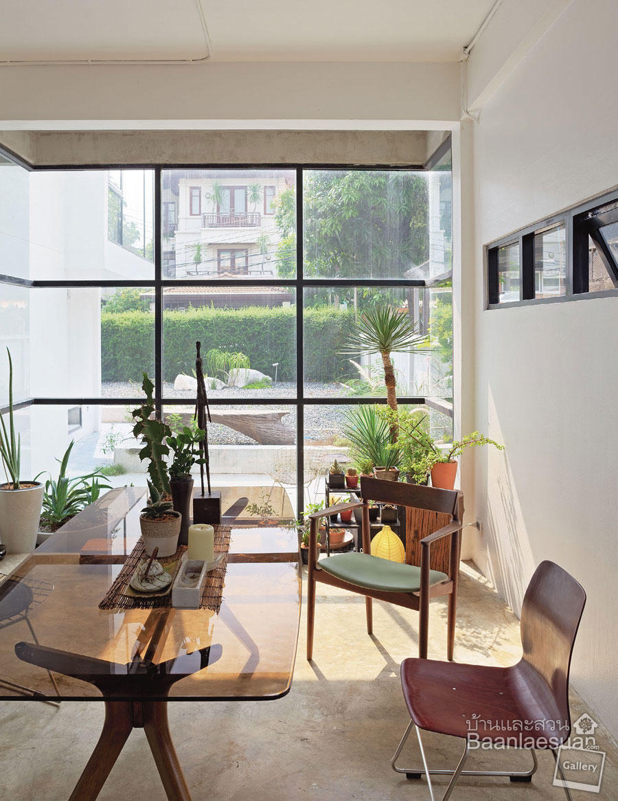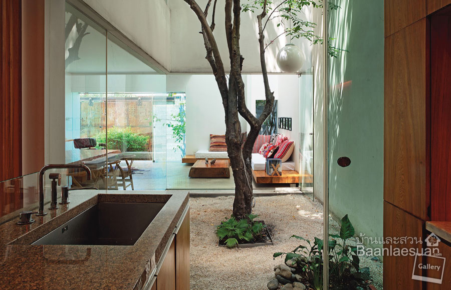 – ตำแหน่งที่จัดสวนควรได้รับแสงแดดจากช่องสกายไลท์ ผนังกระจก หรือกลาสบล็อกอยู่บ้าง เพื่อต้นไม้จะได้เจริญเติบโตได้ดี