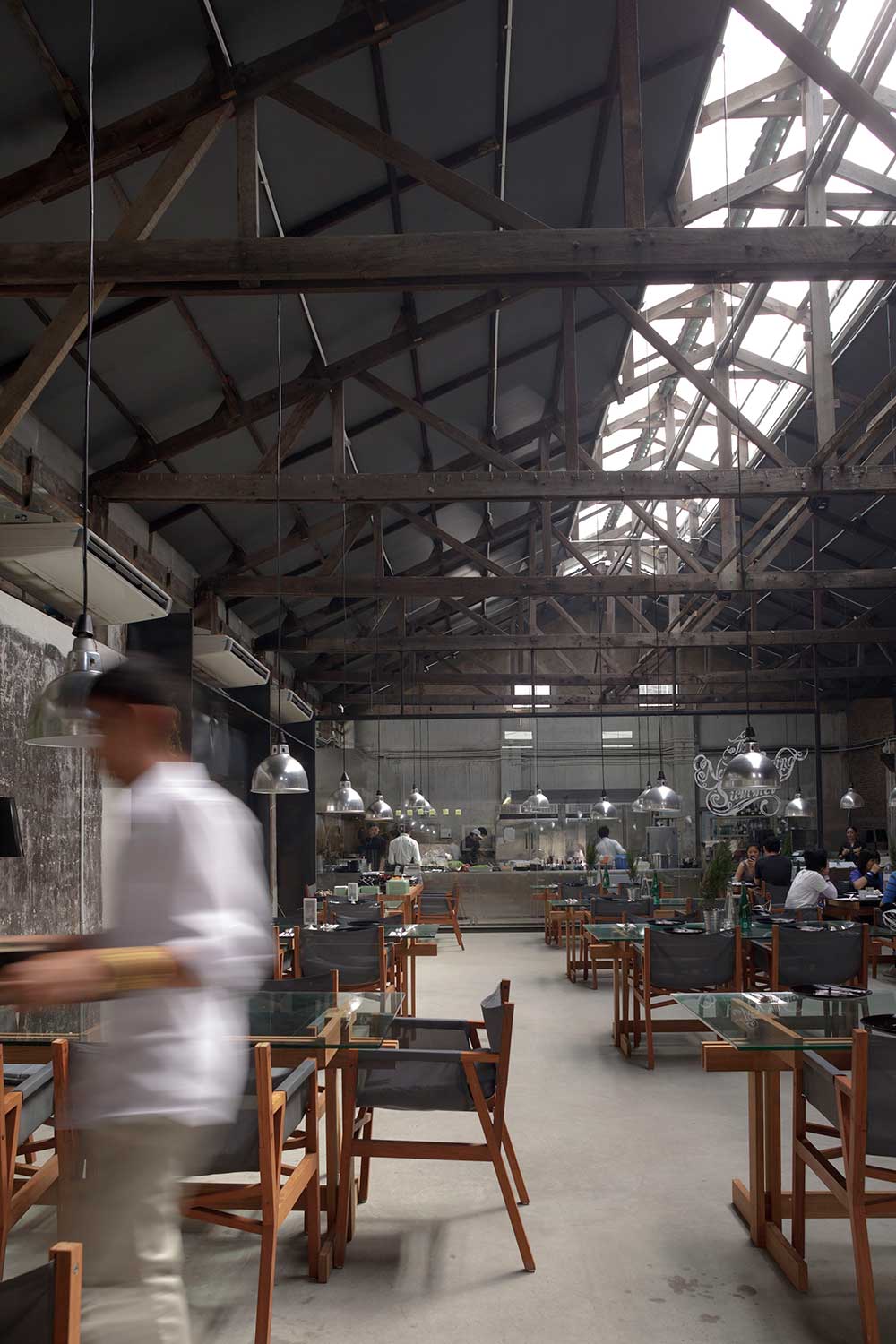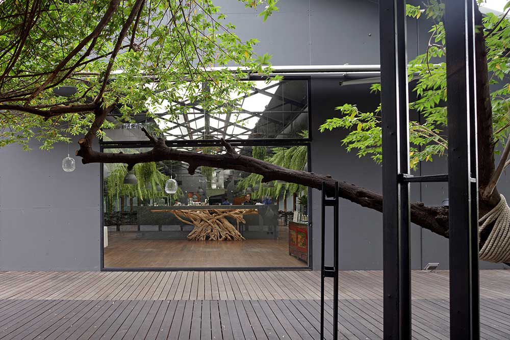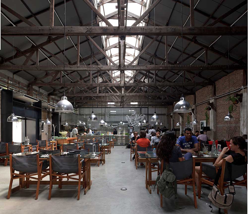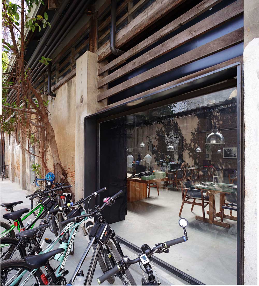 “เชื่อมโยงอดีต ปัจจุบัน อนาคต และชุมชน” คือแนวคิดของคุณด้วง -ดวงฤทธิ์ บุนนาค ในการปรับปรุงโรงงานถ่านไฟฉาย โรงงานยา และโรงน้ำแข็ง ให้กลายเป็นคอมมูนิตี้มอลล์ย่อม ๆ ที่ไม่ได้มีเพียงช้อปปิ้งมอลล์หรือร้านอาหารแบบเดิมๆ แต่มีชั้นเชิงการนำเสนอกิจกรรมที่หลากหลายและแตกต่าง สภาพเดิมของพื้นที่มีโกดังเก่ามุงหลังคาสังกะสี ตัวตึกทรุดโทรม การปรับปรุงใหม่ใช้วิธีเก็บโครงสร้างหลักของโกดังที่มีความสวยงามแบบคลาสสิกเอาไว้ คงโครงหลังคาซึ่งเป็นโครงถักไม้ และร่องรอยเก่า ๆ บนผิวปูน ทำให้เห็นถึงความสวยงามของสถาปัตยกรรมในยุคก่อน จากนั้นตกแต่งเพิ่มเติมด้วยงานเหล็กเพิ่มกลิ่นอายแบบอินดัสเทรียล พื้นที่กลางโครงการเดิมทีมีผู้คนอาศัยอยู่บางส่วนเมื่อรื้อบ้านที่เบียดเสียดกันอยู่ก็เห็นว่ามีต้นไม้ใหญ่จึงเก็บรักษาเอาไว้และปรับพื้นที่เป็นสนามหญ้าโล่งอวดฟอร์มต้นไม้ที่โดดเด่นระหว่างโกดังสองหลังเชื่อมโยงไปยังร้านกาแฟ และพื้นที่จัดแสดงศิลปะได้อย่างลงตัว