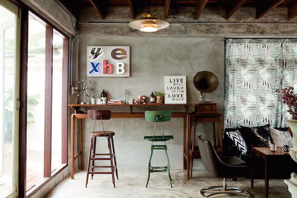 สวนทรอปิคัล ที่ผสมผสานการตกแต่งสไตล์ลอฟต์และแอนทีค
