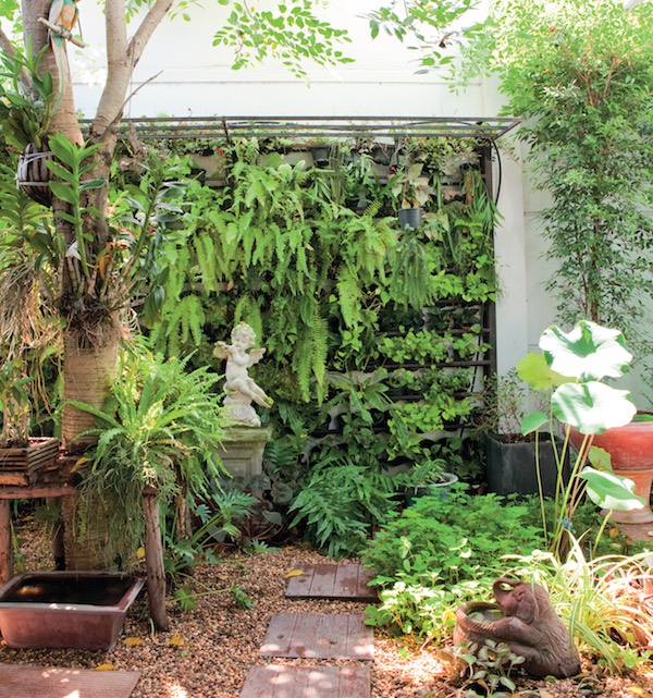 “ผมขอรบกวนเวลาสักสิบนาที อยากให้เล่าถึงความเป็นมาของสวนนี้ให้ฟังสักนิดได้ไหมครับ ” ผมพูดพร้อมกับเดินตามคุณเอไปยังมุมโต๊ะบริเวณสวนแนวตั้งหลังบ้าน สวนรื่นรมย์