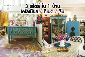 เลือกใช้ผ้าที่มีสีสันกับพวกหมอนอิง ผ้าบุเฟอร์นิเจอร์ หรือผ้าบุหัวเตียง เพื่อเพิ่มบรรยากาศให้นุ่มนวลขึ้น ภาพรวมของการตกแต่งภายในเลือกใช้ไม้สีธรรมชาติ คุณยุทธนา เหมาะประเสริฐ บอกว่า คุณณกรณ์มีส่วนร่วมในการกำหนดสไตล์การตกแต่งที่ทำให้บ้านดูไม่เป็นผู้ใหญ่จนเกินไป เขาชอบการตกแต่งแบบไทยที่มีความทันสมัยและชอบภาพวาดแบบไทยเป็นพิเศษ คุณณกรณ์จะไปเลือกแล้วขอความเห็นชอบจากผู้ออกแบบ ส่วนสีสันอื่นๆ มักเลือกใช้กับพวกหมอนอิง ผ้าบุเฟอร์นิเจอร์ หรือผ้าบุหัวเตียง ซึ่งช่วยเพิ่มบรรยากาศที่นุ่มนวลขึ้น