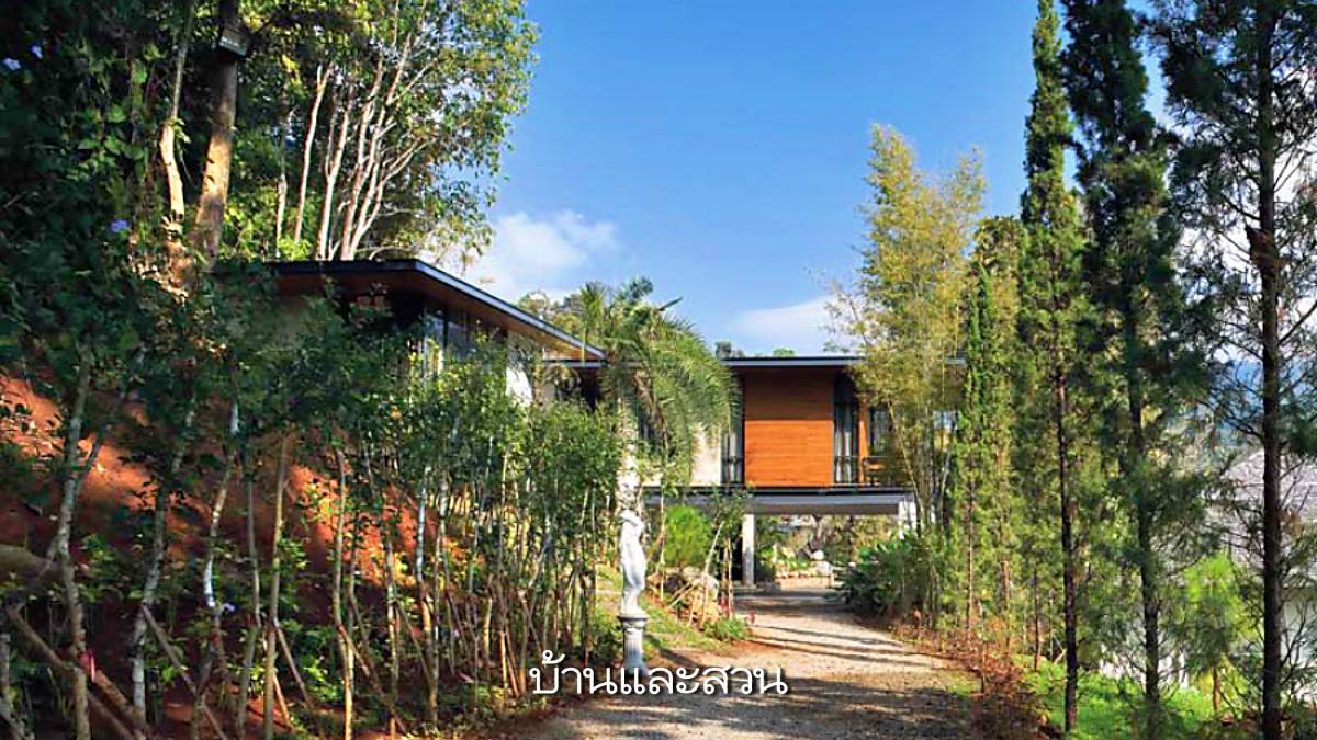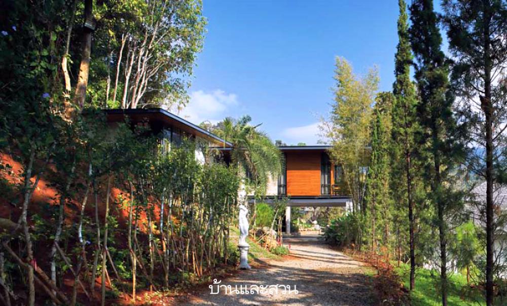 ด้วยรูปทรงของตัวบ้านที่ค่อนข้างยาว อีกทั้งยังตั้งอยู่บนไหล่เขา อันจะทำให้มุมมองส่วนใหญ่อยู่ในระดับต่ำกว่าตัวบ้านเกือบทุกด้าน พลอยทำให้เกิดภาพในลักษณะที่ว่าบ้านหลังนี้ดูมีขนาดใหญ่กว่าความเป็นจริง