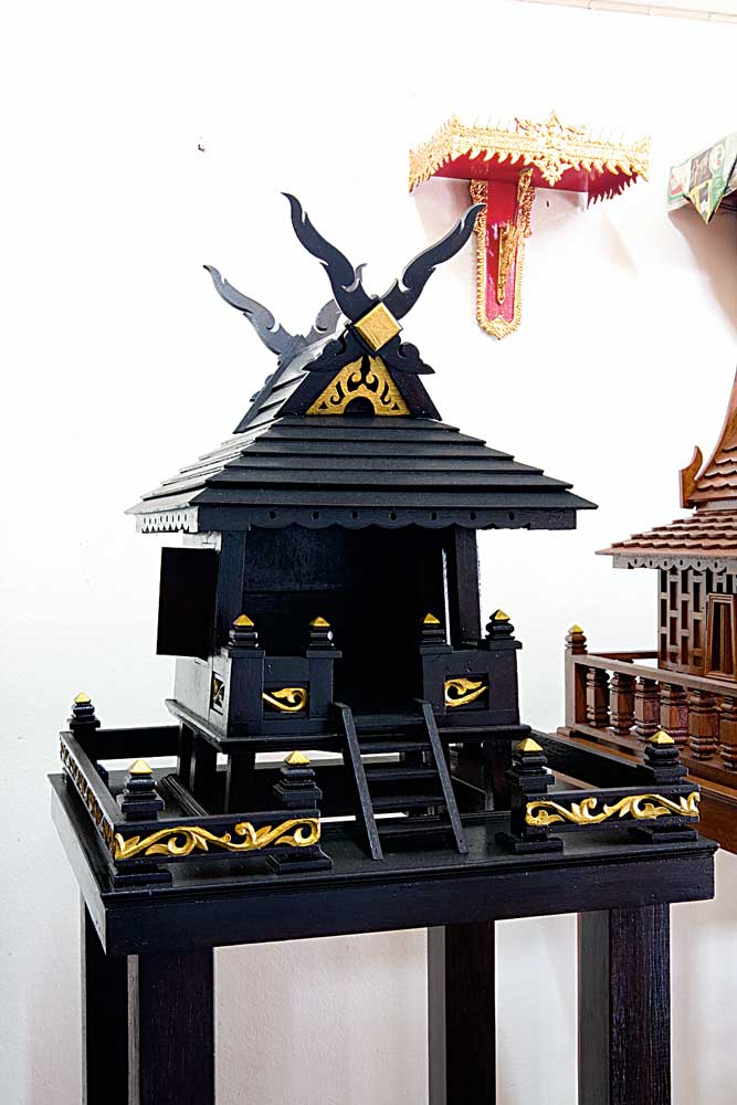 3. ควรยกพื้นที่ตั้งศาลให้สูงขึ้นจากพื้นดินประมาณ 1 คืบ (กรณีที่สามารถยกได้) และความสูงของศาลควรให้อยู่เหนือระดับสายตาขึ้นไปเล็กน้อย