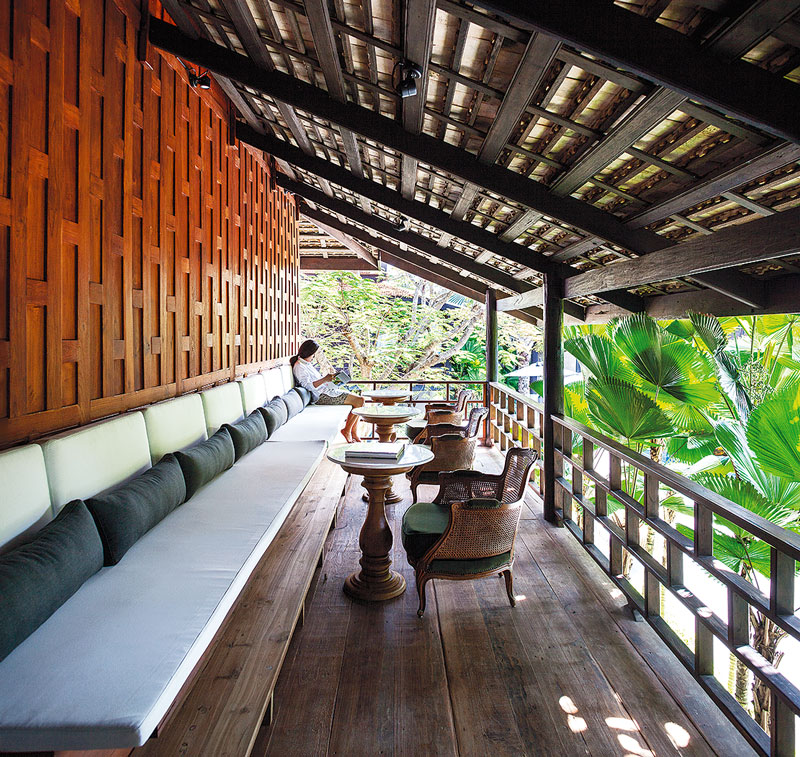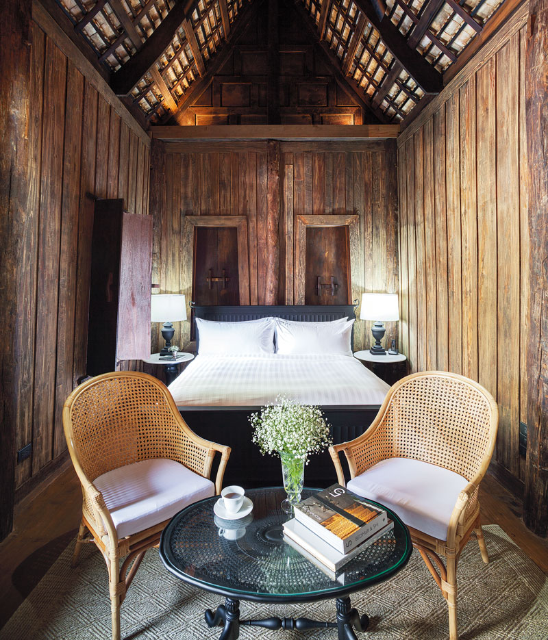 ขณะที่เรือนไทยแต่ละหลังคือบ้านพักที่ให้ความเป็นส่วนตัวสูงสุด แม้จัดวางต่อเนื่องราวกับเป็นหมู่บ้านน้อยๆ แต่ก็อยู่ในมุมที่ไม่รบกวนกันและกัน ทุกหลังมีพื้นที่สวนและร่มเงาไม้ใหญ่ พร้อมโถงนั่งเล่นขนาดกว้างบริเวณใต้ถุนบ้านของตัวเอง ซึ่งตกแต่งด้วยเครื่องเรือนที่สวยแตกต่างกันไป
