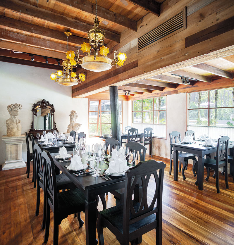 ความรื่นรมย์ยังมีให้ได้สัมผัสไปจนถึงเมนูอาหารไทยและนานาชาติที่ปรุงรสชาติอย่างเข้มข้นจากวัตถุดิบสดใหม่ของชุมชน พร้อมเสิร์ฟกันภายในห้องอาหารที่อุ่นด้วยงานไม้และแชนเดอเลียร์โบราณ หรือจะจัดโต๊ะดินเนอร์สุดแสนโรแมนติกริมสระว่ายน้ำ แม้แต่กลางวันก็ยังมีห้องดื่มน้ำชาบนชั้นสองของเรือนไทยที่มองออกมาชมความสดชื่นของสระว่ายน้ำและท้องฟ้ากว้างได้เพลินตา