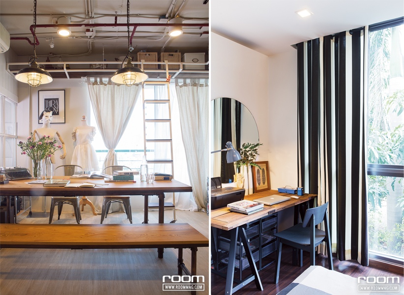 05. สำหรับห้องสตูดิโอขนาดเล็ก ควรเลือกใช้โต๊ะยาวตัวใหญ่อเนกประสงค์ สำหรับเป็นทั้งมุมทำงาน รับประทานอาหาร โดยอาจใช้ตู้ที่มีล้อเลื่อนสำหรับเก็บอุปกรณ์สำหรับแต่ละกิจกรรมเพื่อให้เคลื่อนย้ายสะดวก เหมาะกับการใช้งานทุกรูปแบบ