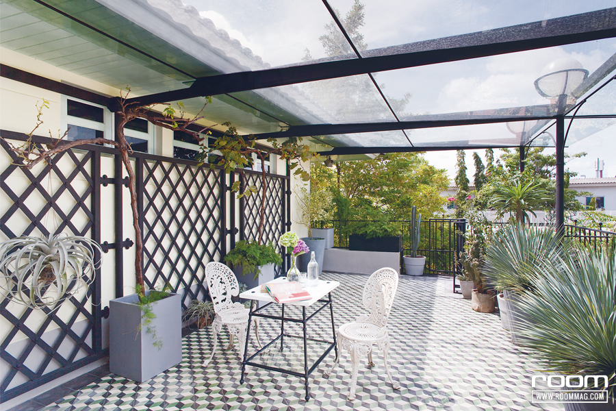 85 เพิ่มพาร์ทิชันเล็ก ๆ สักมุมที่ระเบียง เพื่อสร้างความเป็นส่วนตัว และทำให้ระเบียงมีสเปซใช้งานหลากหลายขึ้น