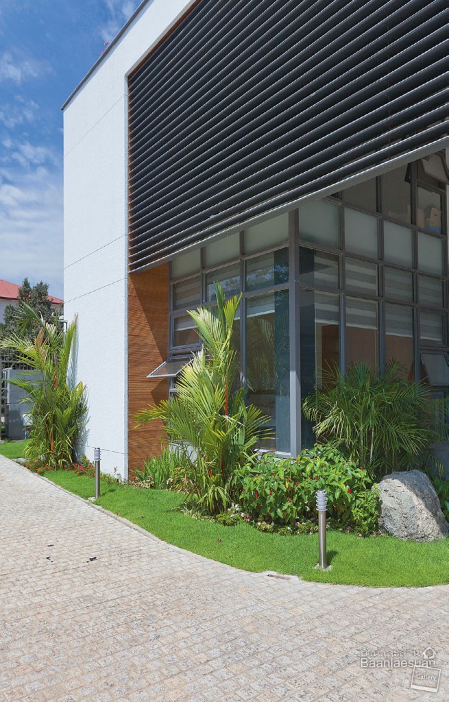 แม้บ้านหลังนี้จะออกแบบให้มีหน้าตาทันสมัยตามแบบสถาปัตยกรรมตะวันตก แต่สถาปนิกยังคำนึงถึงวิถีชีวิตของคนในพื้นถิ่นและลักษณะอากาศในเขตร้อนชื้น จึงนำความต่างในวัฒนธรรมมาจัดวางให้เข้ากันได้อย่างร่วมสมัยและลงตัว เป็นความพอดิบพอดีที่เรียบง่าย แต่ได้ใจผมจริงๆครับ