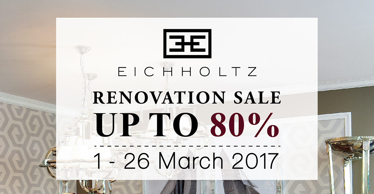 Eichholtz by Quattro Design (ไอค์โฮลท์ บาย ควอตโตร ดีไซน์) แบรนด์เฟอร์นิเจอร์และของแต่งบ้านชื่อดังจากเนเธอร์แลนด์ จัดงานลดราคาสินค้าครั้งใหญ่ประจำปี “ Eichholtz by Quattro Design Renovation Sale..Up to 80%” ลดราคาสูงสุดถึง 80% พร้อมรับส่วนลดเพิ่ม 10% เมื่อซื้อสินค้าครบตามเงื่อนไขที่กำหนด ตั้งแต่วัน8ที่ 1 – 26 มีนาคมนี้ ที่ร้าน Eichholtz by Quattro Design (อาคาร Civic Park ซอยทองหล่อ 13) สอบถามรายละเอียดเพิ่มเติมโทร 02-712-5669 หรือ www.facebook.com/QuattroDesign
