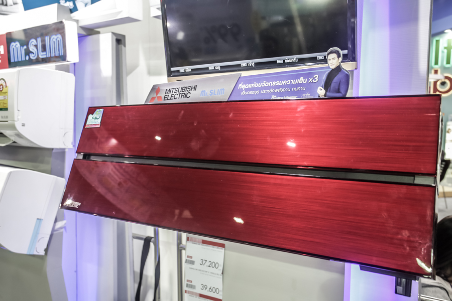 รีบมาหาอุปกรณ์คลายร้อนให้กับตัวเองที่มีมาให้เลือกหลากหลาย ยกกันมาแบบครบครันมหกรรมเครื่องทำความเย็น ไม่ว่าจะเป็นพัดลมไอเย็นในราคาไม่แพง หรือเครื่องปรับอากาศเคลื่อนที่ที่สามารถเคลื่อนย้ายไปตามจุดต่างๆ ได้สะดวก นอกจากนี้ที่เป็นสินค้าชิ้นสะดุดตาคือเครื่องปรับอากาศดีไซน์สวย LN Series แบรนด์ Mitsubishi Electric ดีไซน์โมเดิร์นเรียบหรูที่มีให้เลือกถึง 3 สีทั้งสีแดง สีขาว และสีดำ มาพร้อมเทคโนโลยี 3D Move-eye Human Sensor เซ็นเซอร์อัจฉริยะที่มากถึง 8 จุดช่วยส่งลมเย็นได้ตรงจุด ผสานระบบ Variable air flow & Wide air flow ที่กระจายลมเย็นได้อย่างอิสระ ขนาด 8,871 BTU ราคา 37,200 บาท, ขนาด 12,966 BTU ราคา 39,600 บาท และขนาด 18,084 BTU ราคา 55,100