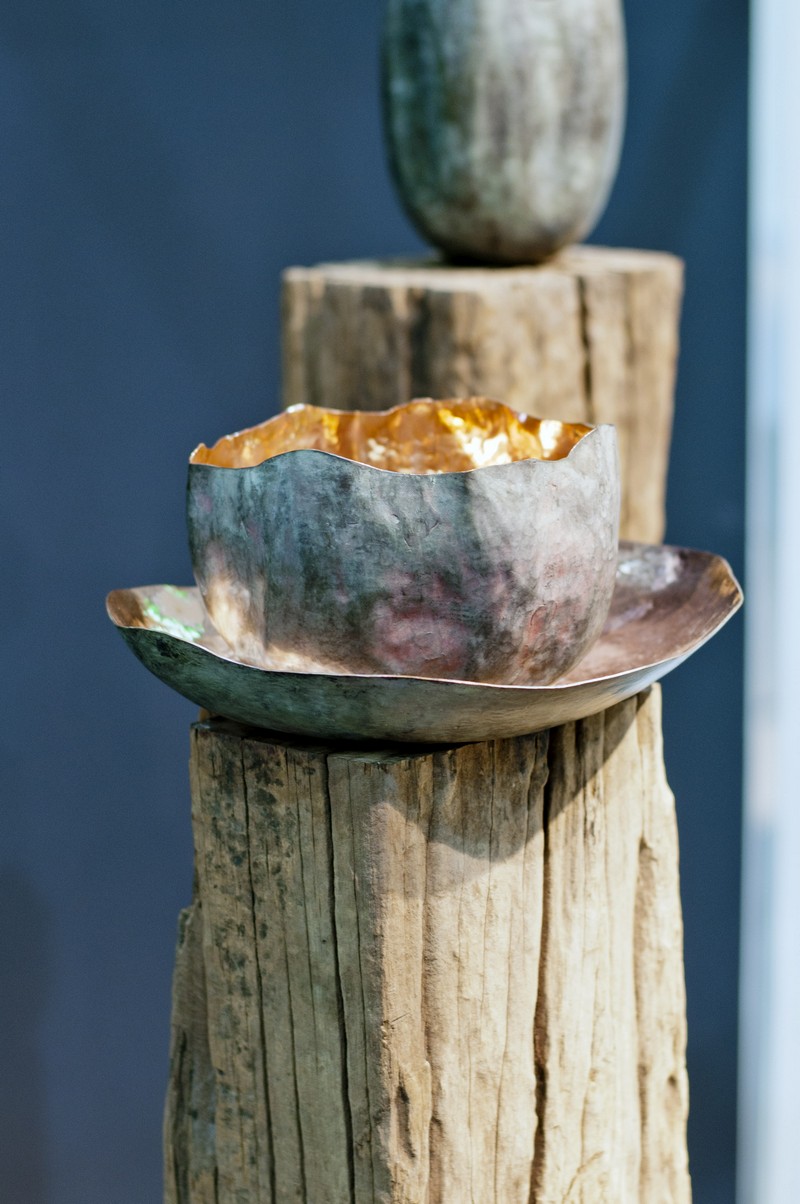 เทคนิค ใช้การขึ้นรูปบ้านบาตร Hammered bowl /เทคนิคการทำสี /Oxidized metal surfaces , Patina color , Thermochromic color