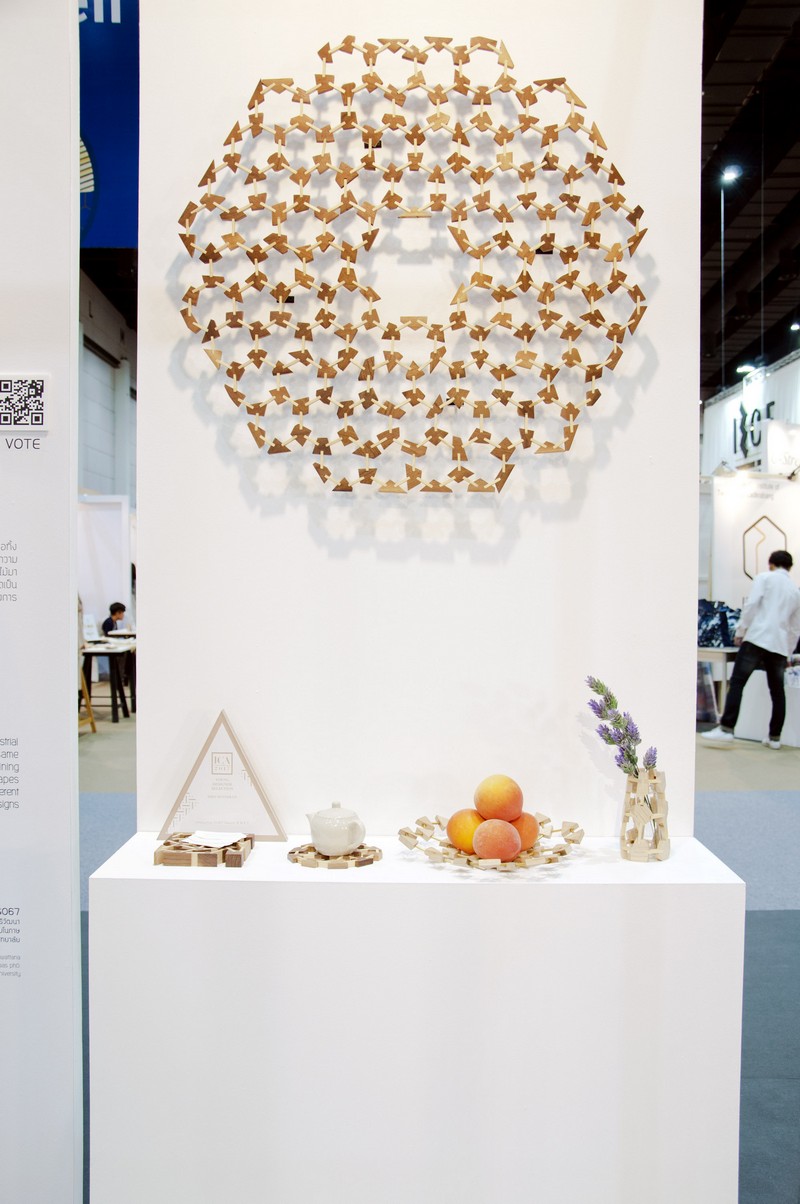 แนวคิด ผลิตภัณฑ์ของตกแต่งไม้ที่ได้จากการนำเศษวัสดุไม้เหลือทิ้งจากกระบวนการผลิตทางอุตสาหกรรมของชุมชน กลุ่มนักออกแบบที่มีความสนใจในงานไม้มาสร้างคุณค่าก่อเกิดเป็นผลงานชิ้นใหม่ โดยการนำเศษไม้มาตัดเป็นชิ้นๆ แล้วจึงต่อเข้าด้วยกันอย่างเป็นระบบด้วยเทคนิคการเข้าไม้ เกิดเป็นรูปทรงและลวดลายของชิ้นงาน นอกจากนี้ยังสามารถต่อยอดในแง่ของการนำเศษวัสดุจากชุมชนต่างๆมาผสานสร้างสรรค์ผลงานได้อีกด้วย