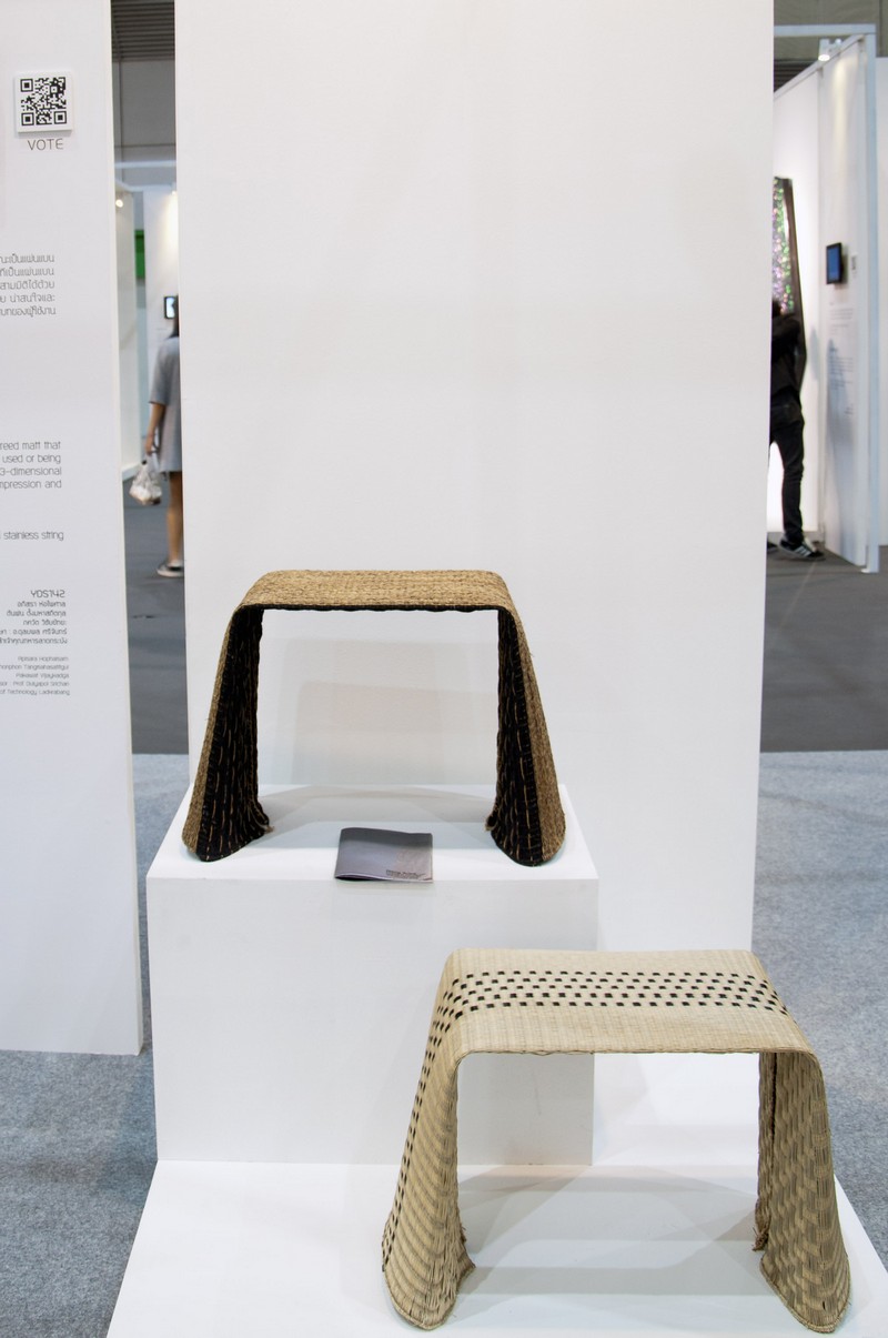 แนวคิด จากการได้ไปเรียนรู้ในชุมชนเสื่อกกทอมือมีลักษณะที่เป็นแผ่นแบนต่อกัน จึงสนใจอยากทำให้เสื่อมีความสามารถในการขึ้นรูปสามมิติได้ด้วยตัวของมันเองและทำให้เกิดเป็นผลิตภัณฑ์ที่มีความท้าทาย น่าสนใจและแปลกใจเมื่อได้เห็น พร้อมกับฟังก์ชั่นการใช้ที่สอดคล้องกับอิริยาบทของผู้ใช้งาน