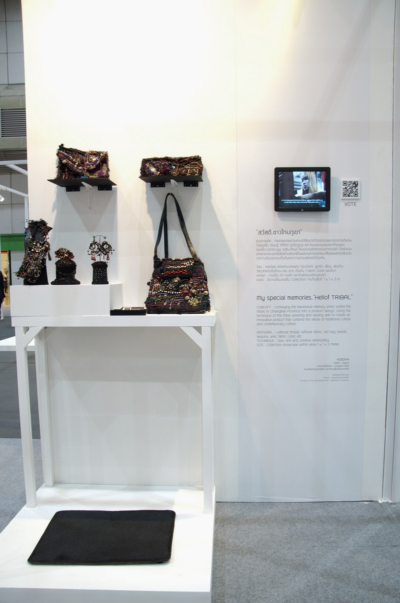 แนวคิด ถ่ายทอดภาพความทรงจำที่ประทับใจจากประสบการณ์การเดินทางไปพบเห็น เรียนรู้ วิถีชีวิต ภูมิปัญญา และวัฒนธรรมของชาวไทยภูเขา (เผ่าลั๊วะ / ปกากะญอ จ.เชียงใหม่) โดยนำหัตถกรรมการทอผ้า ปักผ้าของชาวเขามาประยุกต์เพื่อสร้างสรรค์เป็นผลงาน การออกแบบที่ผสมผสานกลิ่นอายระหว่างวัฒนธรรมดั้งเดิมและความร่วมสมัยเข้าด้วยกัน