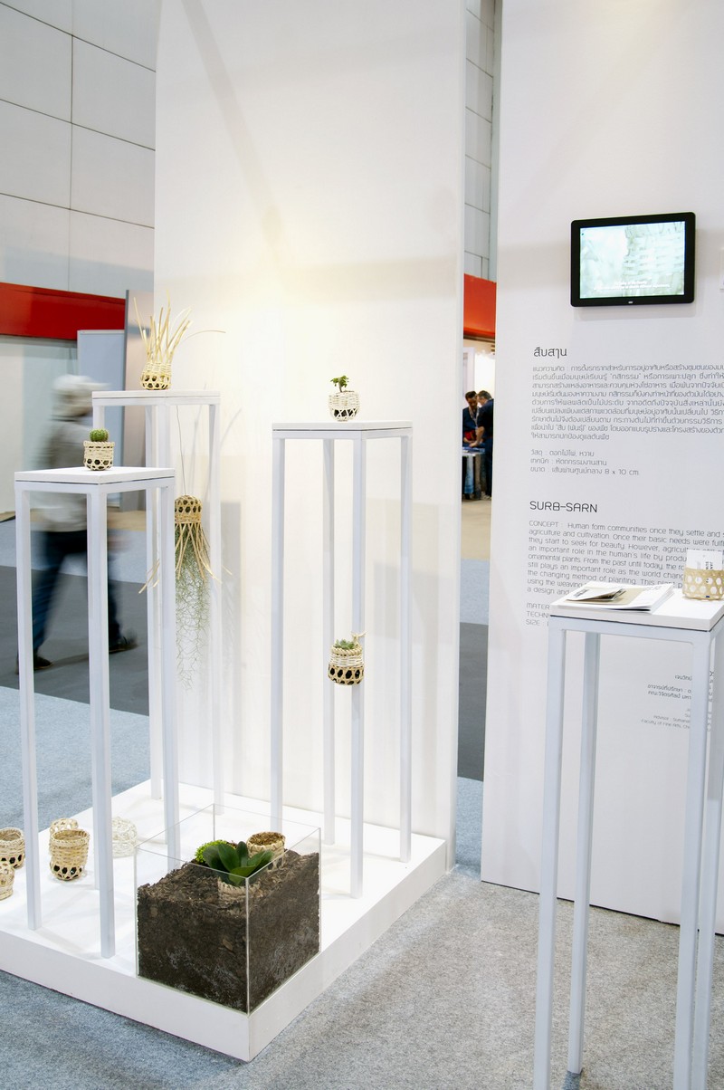 แนวคิด การตั้งรกรากสำหรับการอยู่อาศัยหรือการสร้างชุมชนของมนุษย์นั้นเริ่มต้นขึ้นเมื่อมนุษย์เรียนรู้ “กสิกรรม” หรือการเพาะปลูก ซึ่งทำให้มนุษย์สามารถสร้างแหล่งอาหารและควบคุม ห่วงโซ่อาหาร เมื่อพ้นจากปัจจัยเบื้องต้นมนุษย์เริ่มมองหาความงาม กสิกรรมก็ยังคงทำหน้าที่ของตัวมันได้อย่างดีเยี่ยมด้วยการให้ผลผลิตเป็นไม้ประดับจากอดีตถึงปัจจุบัน สิ่งเรานั้นยังคงไม่เปลี่ยนแปลงเพียงแต่สภาพแวดล้อมที่มนุษย์อยู่อาศัยนั้นเปลี่ยนไป วิธีการดูแลรักษาต้นไม้จึงต้องเปลี่ยนตาม กระถางต้นไม้ ที่ทำขึ้นด้วยกรรมวิธีการ “สาน” เพื่อนำไป “สืบ(พันธุ์)” ของพืชโดยออกแบบรูปร่างและโครงสร้างของตัวกระถางให้สามารถปกป้องดูแลต้นพืช