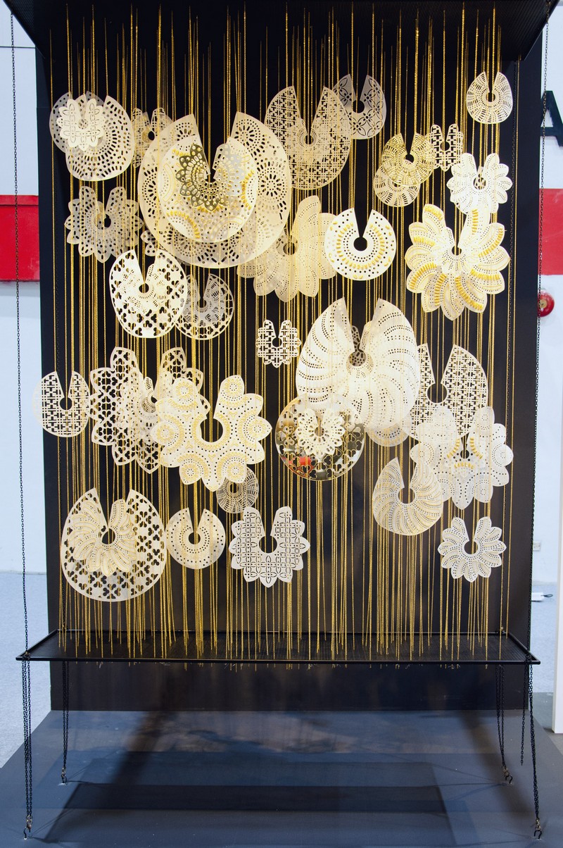 แนวคิด จากภาพจิตรกรรมวนดอกไม้ที่ถูกเรียงร้อยและผสมผสานกันเป็นรูปเครื่องแขวนที่วิจิตรส่องประกายดุจดั่งแสงประทีปทางความคิด ให้นึก และจินตนาการสานต่อได้อย่างวิเศษทำเอานักออกแบบเองได้ฉุกคิดและเห็นถึงความสวยงามของความต่างที่ถูกนำมาร้อยเรียง ตามจังหวะของจินตนาการผสมผสานกันออกมาเป็นความวิจิตรและน่าพิสมัยไม่ต่างอะไรกับวิถีชุมชนที่ทุกๆคนต่างมีความงามที่แตกต่างกันออกไป หากแต่เมื่อใดที่ความต่างถูกนำมาเรียงร้อยด้วยกระบวนการทางศิลปะเข้าด้วยกันก็จะประกอบสำเร็จเสร็จสิ้นเป็นชุมชนๆหนึ่งนั่นเอง