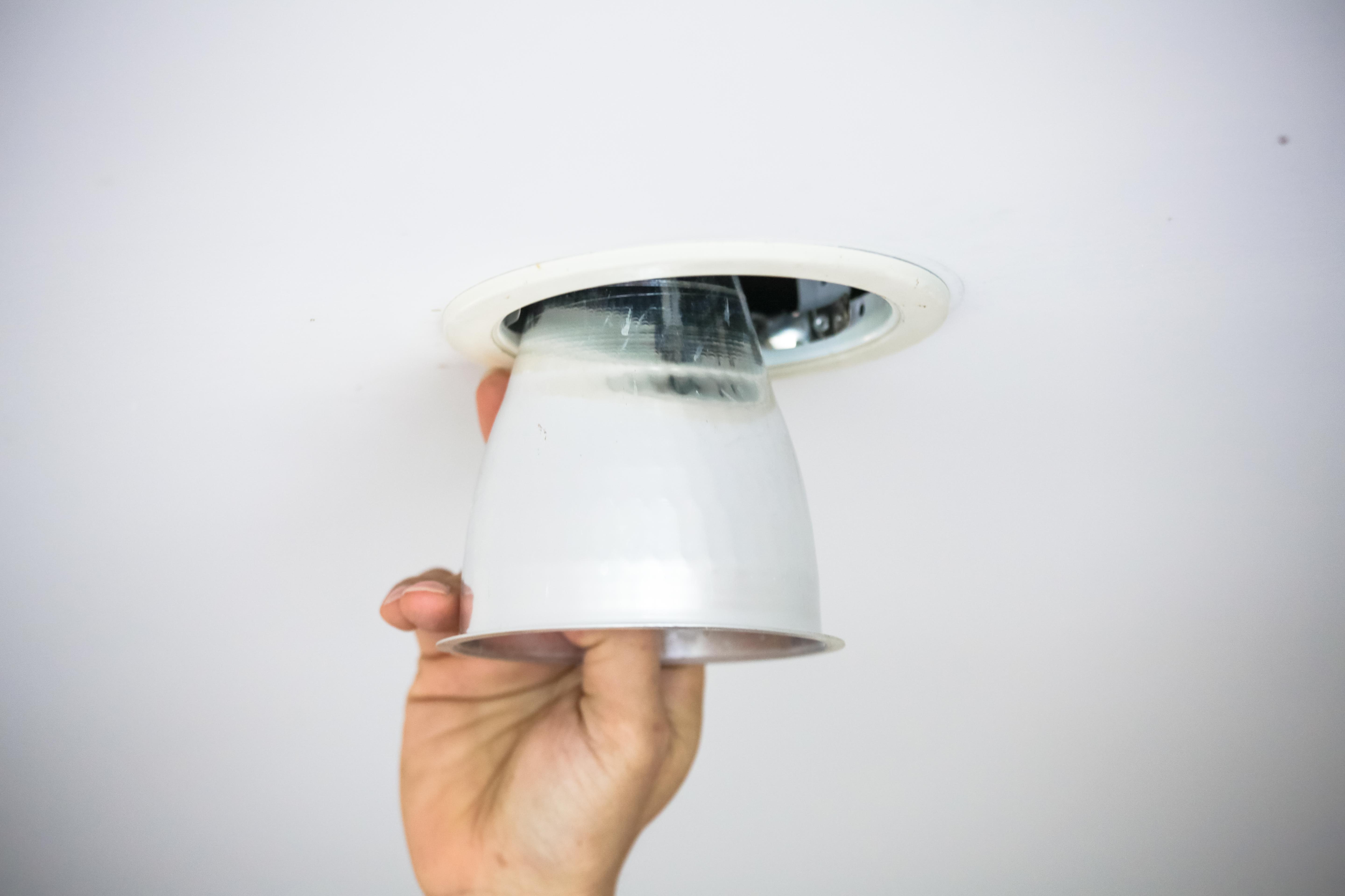 2. ถอดชุดโคมที่ฝังฝ้าด้านในออก
