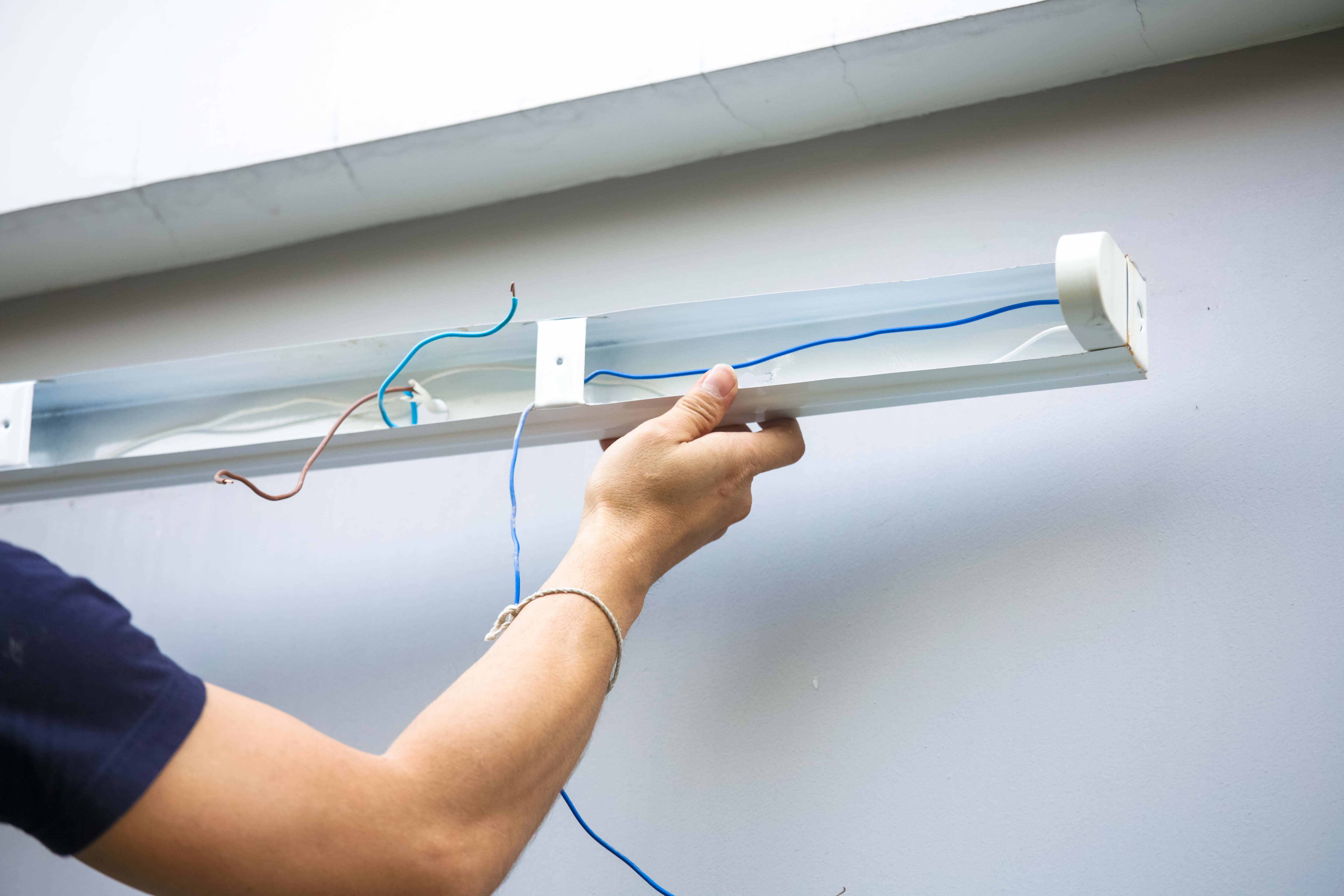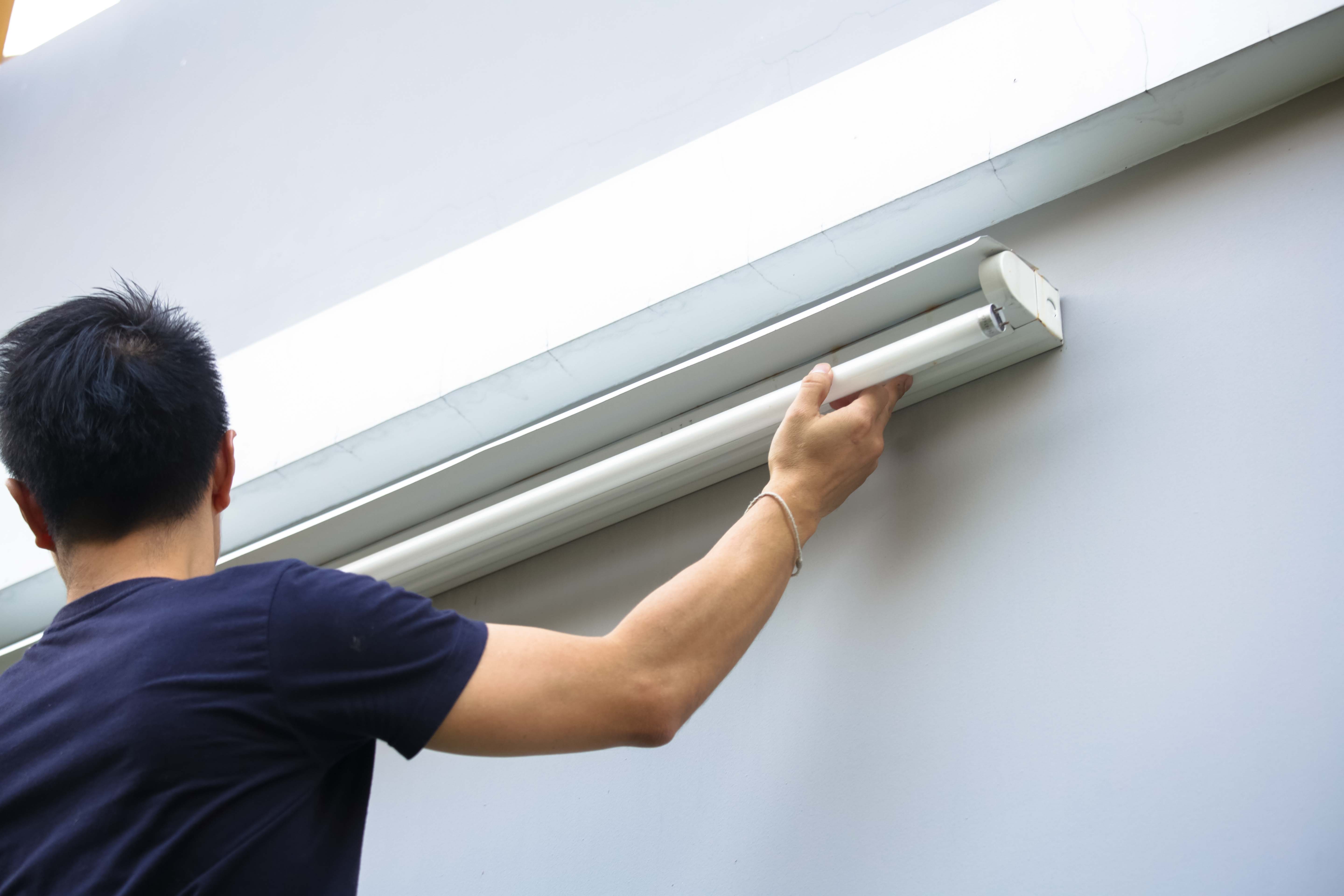 1. ถอดหลอดฟลูออเรสเซนต์พร้อมชุดรางเก่าออก