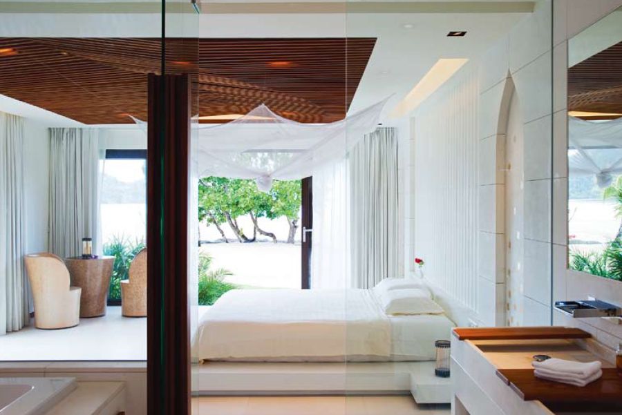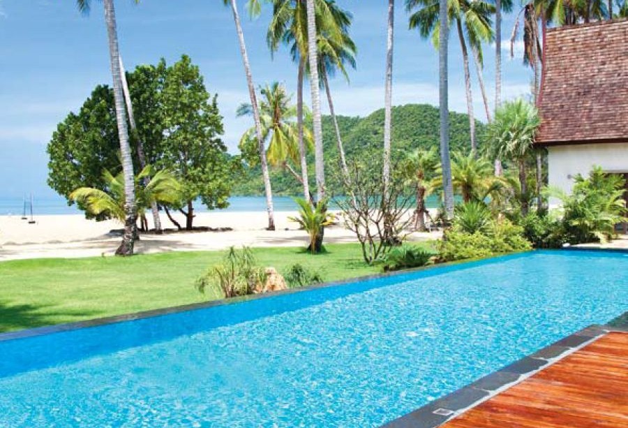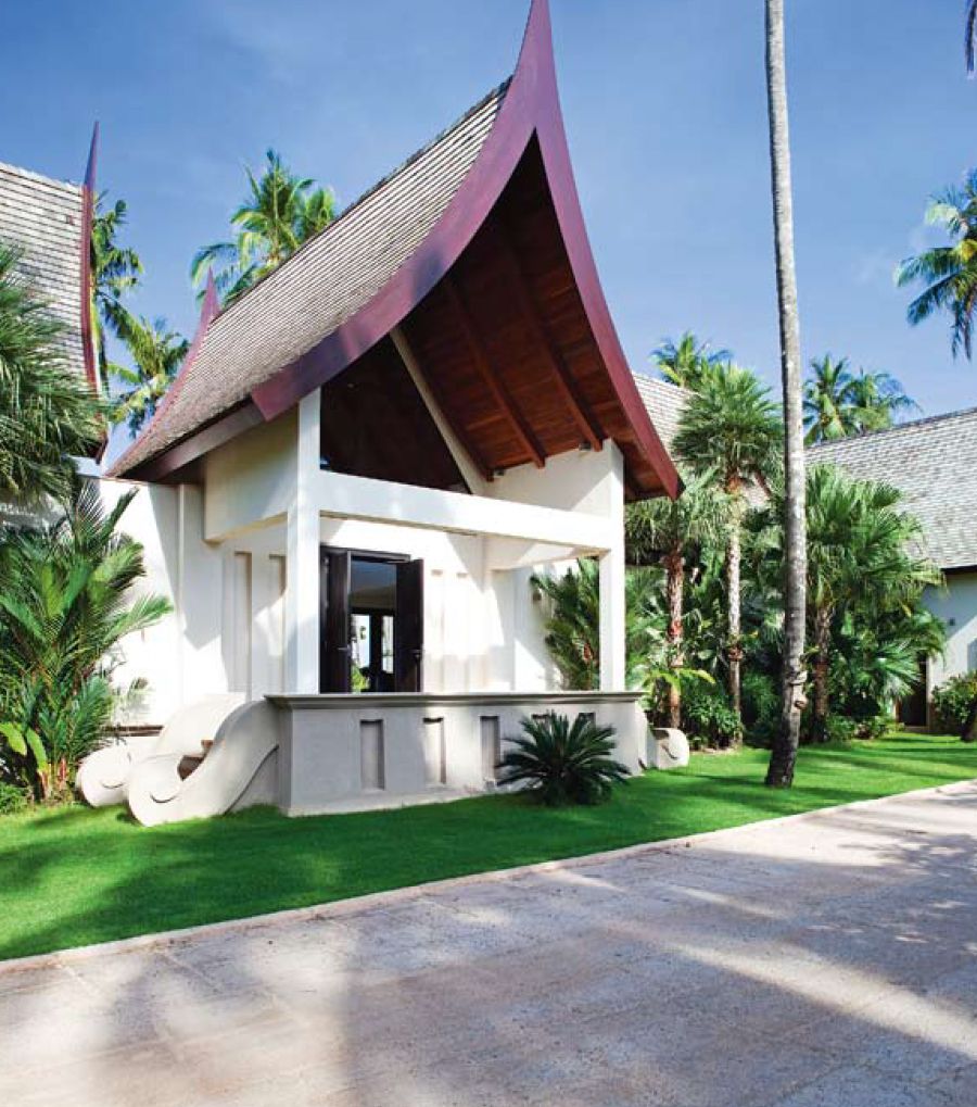 บ้านริมทะเลที่ล้อมรอบด้วยธรรมชาติแสนสดชื่นหลังนี้ตั้งอยู่ที่เกาะช้าง จังหวัดตราด เบื้องหน้าทางเข้าบ้านหันสู่ขุนเขา และด้านหลังออกแบบเป็นสระว่ายน้ำที่หันสู่ท้องทะเล ตัวบ้านออกแบบเป็นรูปตัวยู (U) โอบล้อมสระว่ายน้ำ นอกจากนี้ยังนำแนวคิดบ้านไทยมาใช้ในการออกแบบด้วย ไม่ว่าจะเป็นหลังคาจั่วทรงสูง และชายคายื่นยาวคลุมระเบียงเพื่อเป็นทางเชื่อมห้องต่างๆของบ้าน การแยกตัวบ้านออกเป็นหลังๆ ยังได้ทั้งเรื่องความสวยงามและการระบายความร้อนที่ดีอีกด้วย