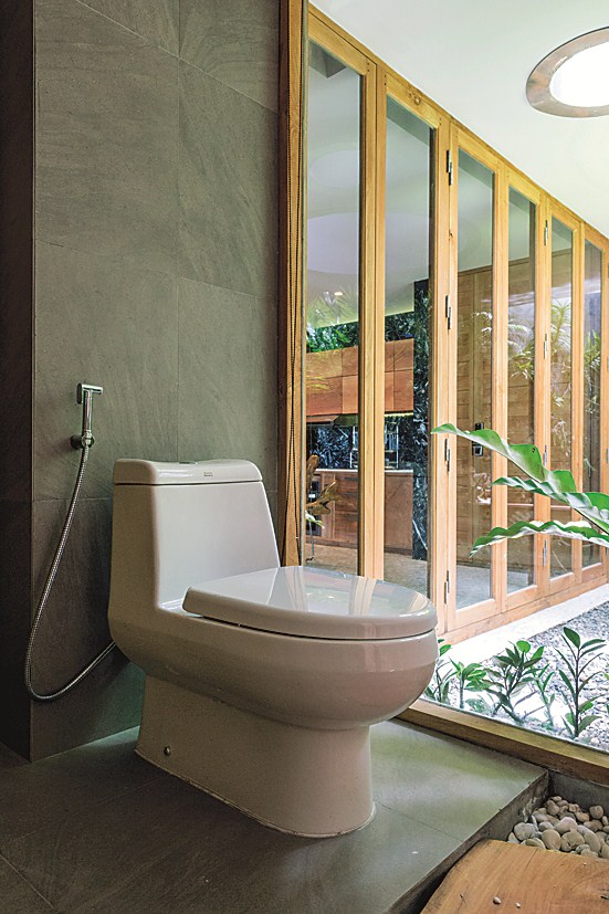 ส่วนบ้านอีกหลังเป็นห้องนอนเล็ก สร้างขนานกับบ้านหลังใหญ่ แม้จะมีขนาดค่อนข้างเล็ก แต่ก็ดูไม่อึดอัด เพราะผนังเป็นกระจกใส และบ้านหลังที่สามอยู่ลึกเข้าไปด้านใน เป็นห้องนอนเล็กที่มีส่วนออกกำลังกายด้วย