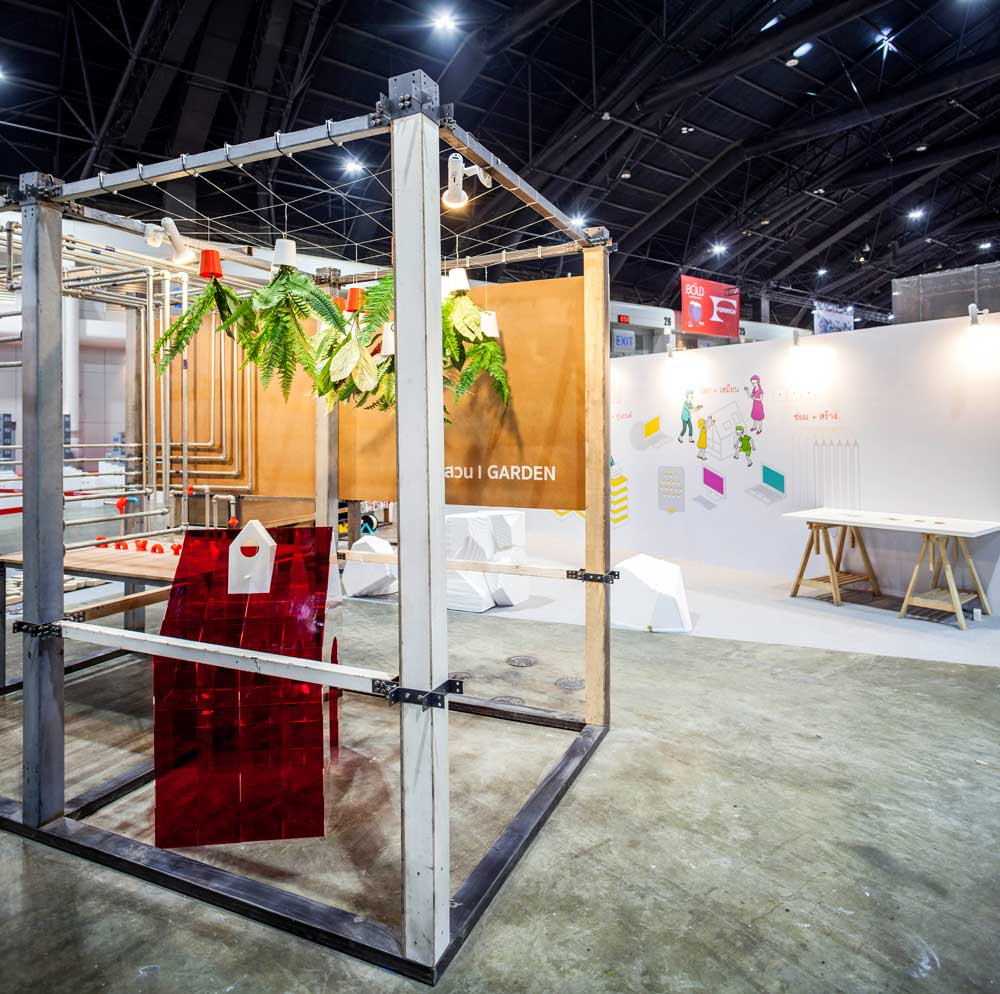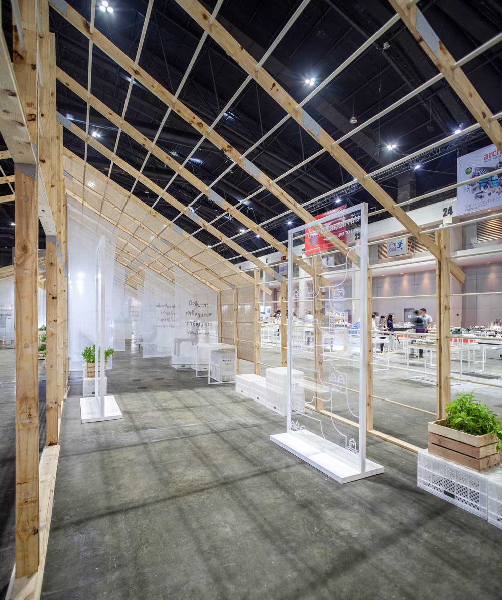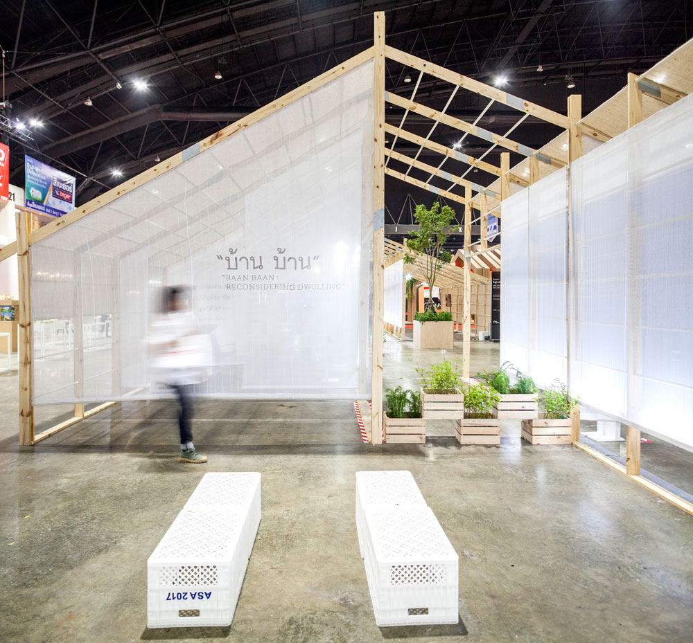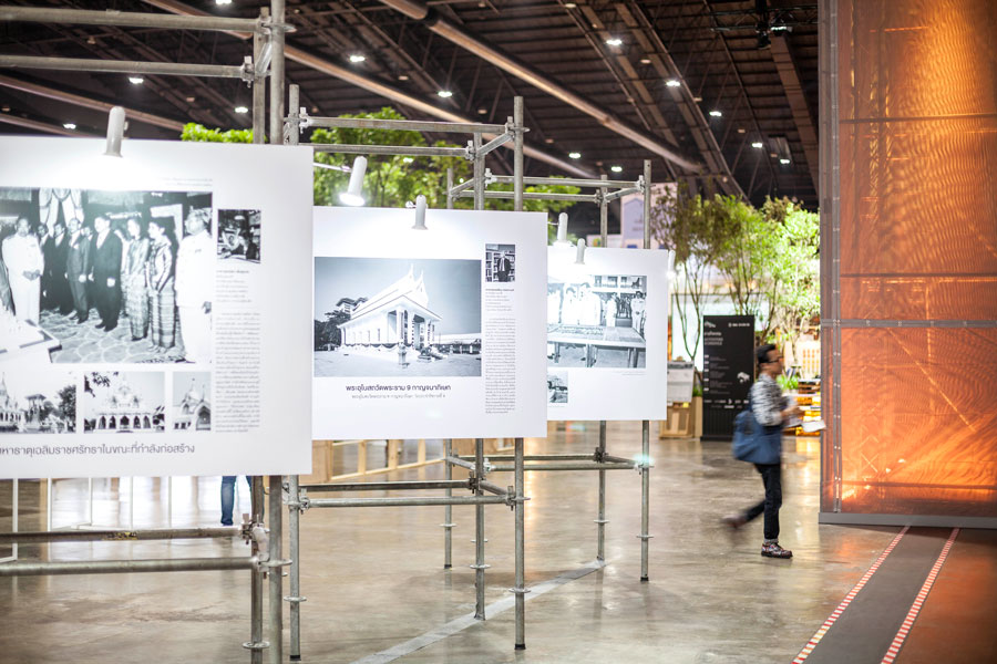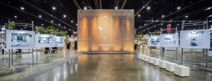 บรรยากาศภายนอกของ นิทรรศการสถาปนิกแห่งแผ่นดิน “บ้าน” บ้านใน บรรยากาศภายใน นิทรรศการสถาปนิกแห่งแผ่นดิน “บ้าน” บ้านในพระราชานิยม นำเสนอผ่านรูปแบบสื่อมัลติมีเดียที่เรียกว่า Multi Projection ซึ่งใช้เทคนิคการจัดแสดงที่ล้ำสมัยกว่างาน Mapping ทั่วไป เนื่องจากเป็นการนำโปรเจ็กเตอร์นับสิบตัวมาฉายภาพพระราชกรณียกิจและผลิตภัณฑ์ในโครงการชั่งหัวมัน บันทึกพระราชกรณียกิจอันเกี่ยวเนื่องกับโครงการทางสถาปัตยกรรม นิทรรศการภาพของพ่อ รวบรวมภาพของ “พ่อ” 120 ผลงานจากหลากหลายบุคคล โดยออกแบบให้สามารถนำส่วนประกอบที่จัดแสดงในนิทรรศการไปใช้ต่อได้ เช่น ขาของแท่นจัดแสดงคือไม้ค้ำที่จะนำไปบริจาคให้ผู้พิการต่อไป นิทรรศการบ้านบ้านตัวอย่าง และ นิทรรศการบ้านบ้านจำลอง จัดแสดงผลงานทั้งภาพ สื่อและแบบจำลอง เพื่อให้เห็นแนวคิดเบื้องหลังของวิชาชีพสถาปนิก รวมถึงช่วยสร้างแรงบันดาลใจให้แก่ผู้สนใจทั่วไป นิทรรศการบ้านบ้านตัวอย่าง และ นิทรรศการบ้านบ้านจำลอง จัดแสดงผลงานทั้งภาพ สื่อและแบบจำลอง เพื่อให้เห็นแนวคิดเบื้องหลังของวิชาชีพสถาปนิก รวมถึงช่วยสร้างแรงบันดาลใจให้แก่ผู้สนใจทั่วไป นิทรรศการบ้านบ้านตัวอย่าง และ นิทรรศการบ้านบ้านจำลอง จัดแสดงผลงานทั้งภาพ สื่อและแบบจำลอง เพื่อให้เห็นแนวคิดเบื้องหลังของวิชาชีพสถาปนิก รวมถึงช่วยสร้างแรงบันดาลใจให้แก่ผู้สนใจทั่วไป นิทรรศการคบหุ่นสร้างบ้าน นำเสนอโลกแห่งอนาคตที่หุ่นยนต์จะใกล้ชิดเรามากกว่าเดิม เช่น “แขนกลเรียงอิฐ” ที่แม่นยำและรวดเร็ว “ข้อต่อท่อประปาที่ออกแบบได้เอง” ด้วยเทคนิคการพิมพ์แบบสามมิติ และ “สวนหลังบ้านที่ Print เองได้” นิทรรศการคบหุ่นสร้างบ้าน นำเสนอโลกแห่งอนาคตที่หุ่นยนต์จะใกล้ชิดเรามากกว่าเดิม เช่น “แขนกลเรียงอิฐ” ที่แม่นยำและรวดเร็ว “ข้อต่อท่อประปาที่ออกแบบได้เอง” ด้วยเทคนิคการพิมพ์แบบสามมิติ และ “สวนหลังบ้านที่ Print เองได้” นิทรรศการคบหุ่นสร้างบ้าน นำเสนอโลกแห่งอนาคตที่หุ่นยนต์จะใกล้ชิดเรามากกว่าเดิม เช่น “แขนกลเรียงอิฐ” ที่แม่นยำและรวดเร็ว “ข้อต่อท่อประปาที่ออกแบบได้เอง” ด้วยเทคนิคการพิมพ์แบบสามมิติ และ “สวนหลังบ้านที่ Print เองได้” นิทรรศการคบหุ่นสร้างบ้าน นำเสนอโลกแห่งอนาคตที่หุ่นยนต์จะใกล้ชิดเรามากกว่าเดิม เช่น “แขนกลเรียงอิฐ” ที่แม่นยำและรวดเร็ว “ข้อต่อท่อประปาที่ออกแบบได้เอง” ด้วยเทคนิคการพิมพ์แบบสามมิติ และ “สวนหลังบ้านที่ Print เองได้” นิทรรศการ บ้าน บ้าน : BAAN BAAN” Reconsidering Dwelling หัวใจหลักของการจัดงานนี้ กล่าวถึงการกลับไปทบทวนถึงหัวใจของการอยู่อาศัย ทั้งใ