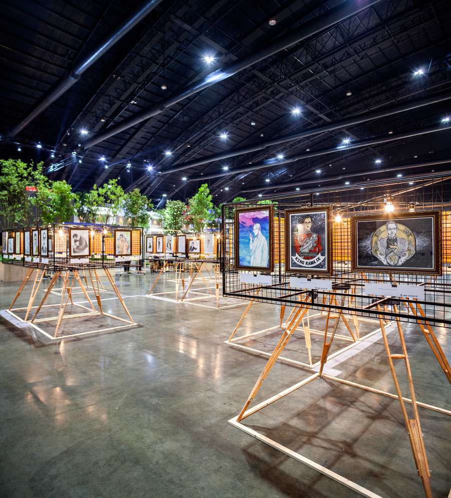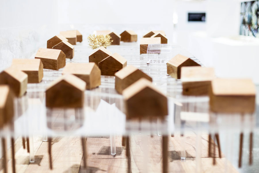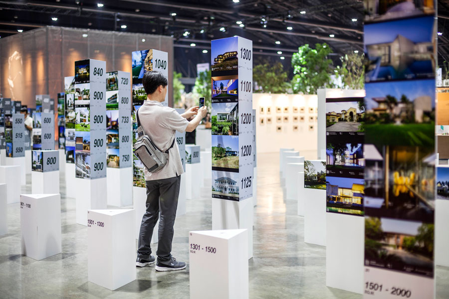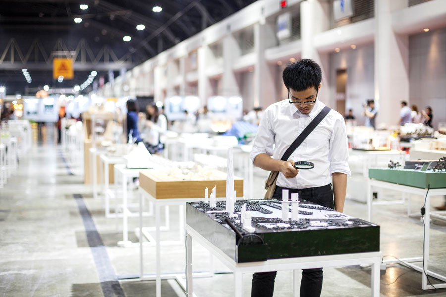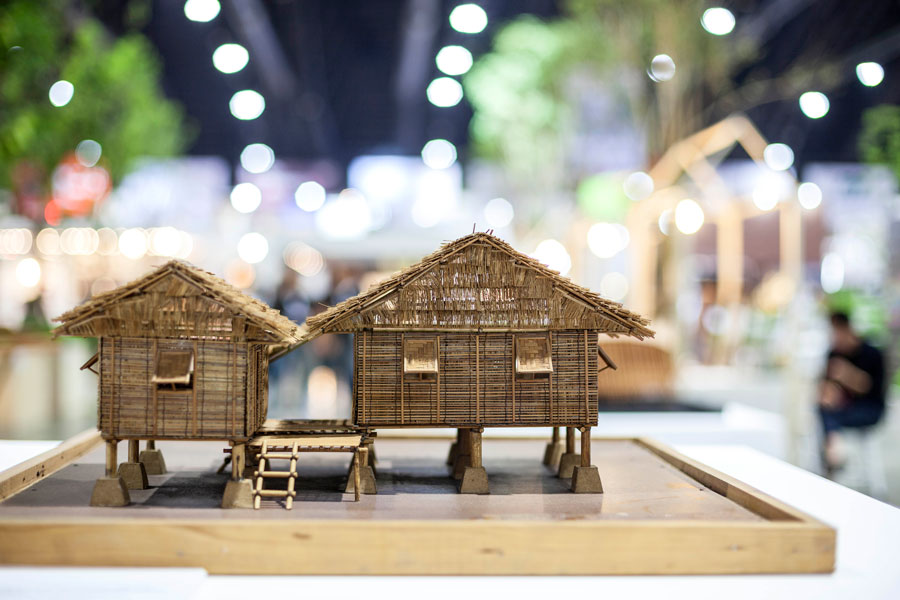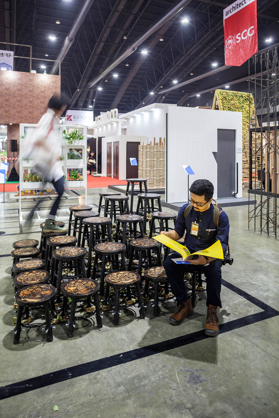 บรรยากาศภายนอกของ นิทรรศการสถาปนิกแห่งแผ่นดิน “บ้าน” บ้านใน บรรยากาศภายใน นิทรรศการสถาปนิกแห่งแผ่นดิน “บ้าน” บ้านในพระราชานิยม นำเสนอผ่านรูปแบบสื่อมัลติมีเดียที่เรียกว่า Multi Projection ซึ่งใช้เทคนิคการจัดแสดงที่ล้ำสมัยกว่างาน Mapping ทั่วไป เนื่องจากเป็นการนำโปรเจ็กเตอร์นับสิบตัวมาฉายภาพพระราชกรณียกิจและผลิตภัณฑ์ในโครงการชั่งหัวมัน บันทึกพระราชกรณียกิจอันเกี่ยวเนื่องกับโครงการทางสถาปัตยกรรม นิทรรศการภาพของพ่อ รวบรวมภาพของ “พ่อ” 120 ผลงานจากหลากหลายบุคคล โดยออกแบบให้สามารถนำส่วนประกอบที่จัดแสดงในนิทรรศการไปใช้ต่อได้ เช่น ขาของแท่นจัดแสดงคือไม้ค้ำที่จะนำไปบริจาคให้ผู้พิการต่อไป นิทรรศการบ้านบ้านตัวอย่าง และ นิทรรศการบ้านบ้านจำลอง จัดแสดงผลงานทั้งภาพ สื่อและแบบจำลอง เพื่อให้เห็นแนวคิดเบื้องหลังของวิชาชีพสถาปนิก รวมถึงช่วยสร้างแรงบันดาลใจให้แก่ผู้สนใจทั่วไป นิทรรศการบ้านบ้านตัวอย่าง และ นิทรรศการบ้านบ้านจำลอง จัดแสดงผลงานทั้งภาพ สื่อและแบบจำลอง เพื่อให้เห็นแนวคิดเบื้องหลังของวิชาชีพสถาปนิก รวมถึงช่วยสร้างแรงบันดาลใจให้แก่ผู้สนใจทั่วไป นิทรรศการบ้านบ้านตัวอย่าง และ นิทรรศการบ้านบ้านจำลอง จัดแสดงผลงานทั้งภาพ สื่อและแบบจำลอง เพื่อให้เห็นแนวคิดเบื้องหลังของวิชาชีพสถาปนิก รวมถึงช่วยสร้างแรงบันดาลใจให้แก่ผู้สนใจทั่วไป นิทรรศการคบหุ่นสร้างบ้าน นำเสนอโลกแห่งอนาคตที่หุ่นยนต์จะใกล้ชิดเรามากกว่าเดิม เช่น “แขนกลเรียงอิฐ” ที่แม่นยำและรวดเร็ว “ข้อต่อท่อประปาที่ออกแบบได้เอง” ด้วยเทคนิคการพิมพ์แบบสามมิติ และ “สวนหลังบ้านที่ Print เองได้” นิทรรศการคบหุ่นสร้างบ้าน นำเสนอโลกแห่งอนาคตที่หุ่นยนต์จะใกล้ชิดเรามากกว่าเดิม เช่น “แขนกลเรียงอิฐ” ที่แม่นยำและรวดเร็ว “ข้อต่อท่อประปาที่ออกแบบได้เอง” ด้วยเทคนิคการพิมพ์แบบสามมิติ และ “สวนหลังบ้านที่ Print เองได้” นิทรรศการคบหุ่นสร้างบ้าน นำเสนอโลกแห่งอนาคตที่หุ่นยนต์จะใกล้ชิดเรามากกว่าเดิม เช่น “แขนกลเรียงอิฐ” ที่แม่นยำและรวดเร็ว “ข้อต่อท่อประปาที่ออกแบบได้เอง” ด้วยเทคนิคการพิมพ์แบบสามมิติ และ “สวนหลังบ้านที่ Print เองได้” นิทรรศการคบหุ่นสร้างบ้าน นำเสนอโลกแห่งอนาคตที่หุ่นยนต์จะใกล้ชิดเรามากกว่าเดิม เช่น “แขนกลเรียงอิฐ” ที่แม่นยำและรวดเร็ว “ข้อต่อท่อประปาที่ออกแบบได้เอง” ด้วยเทคนิคการพิมพ์แบบสามมิติ และ “สวนหลังบ้านที่ Print เองได้” นิทรรศการ บ้าน บ้าน : BAAN BAAN” Reconsidering Dwelling หัวใจหลักของการจัดงานนี้ กล่าวถึงการกลับไปทบทวนถึงหัวใจของการอยู่อาศัย ทั้งใ