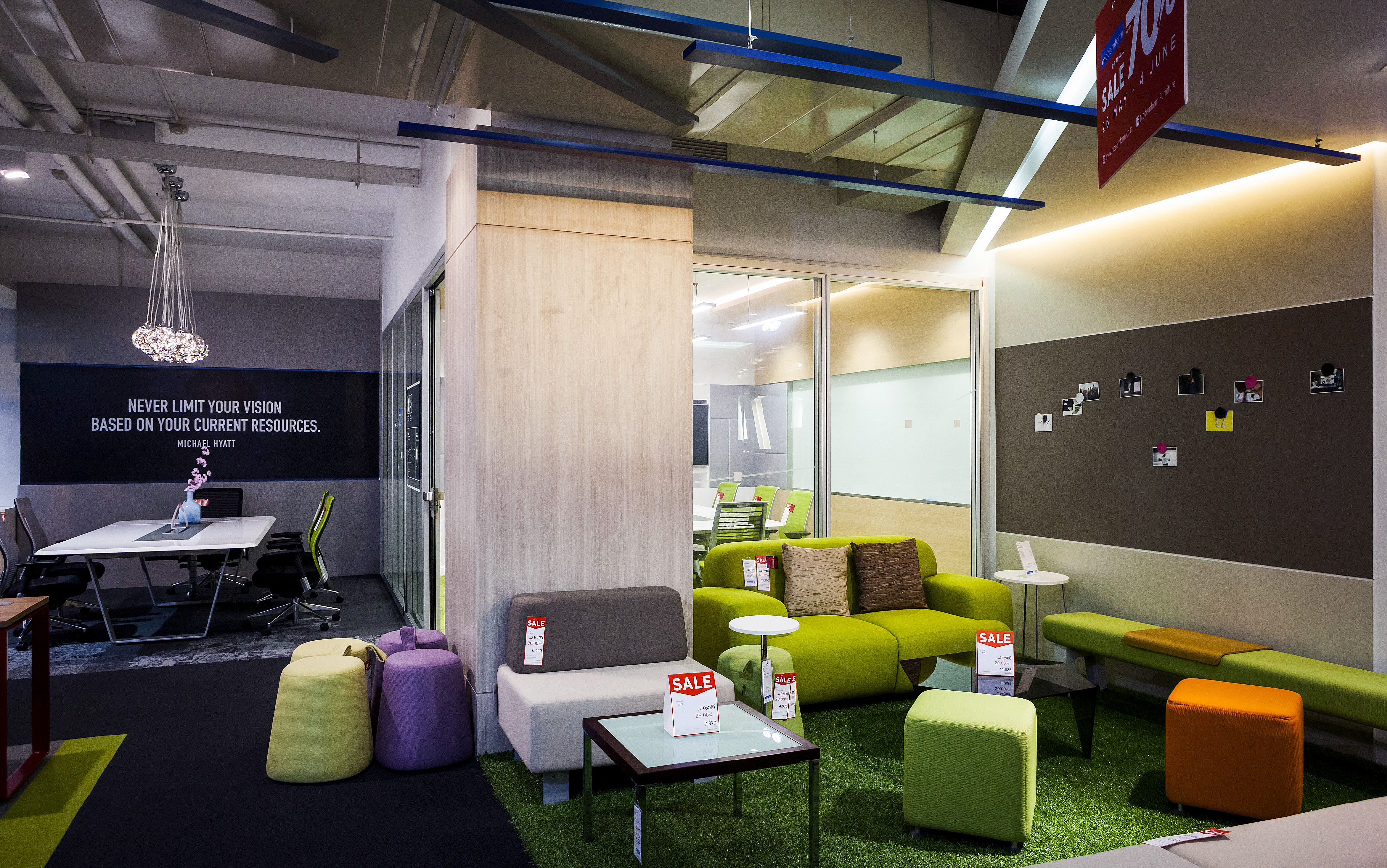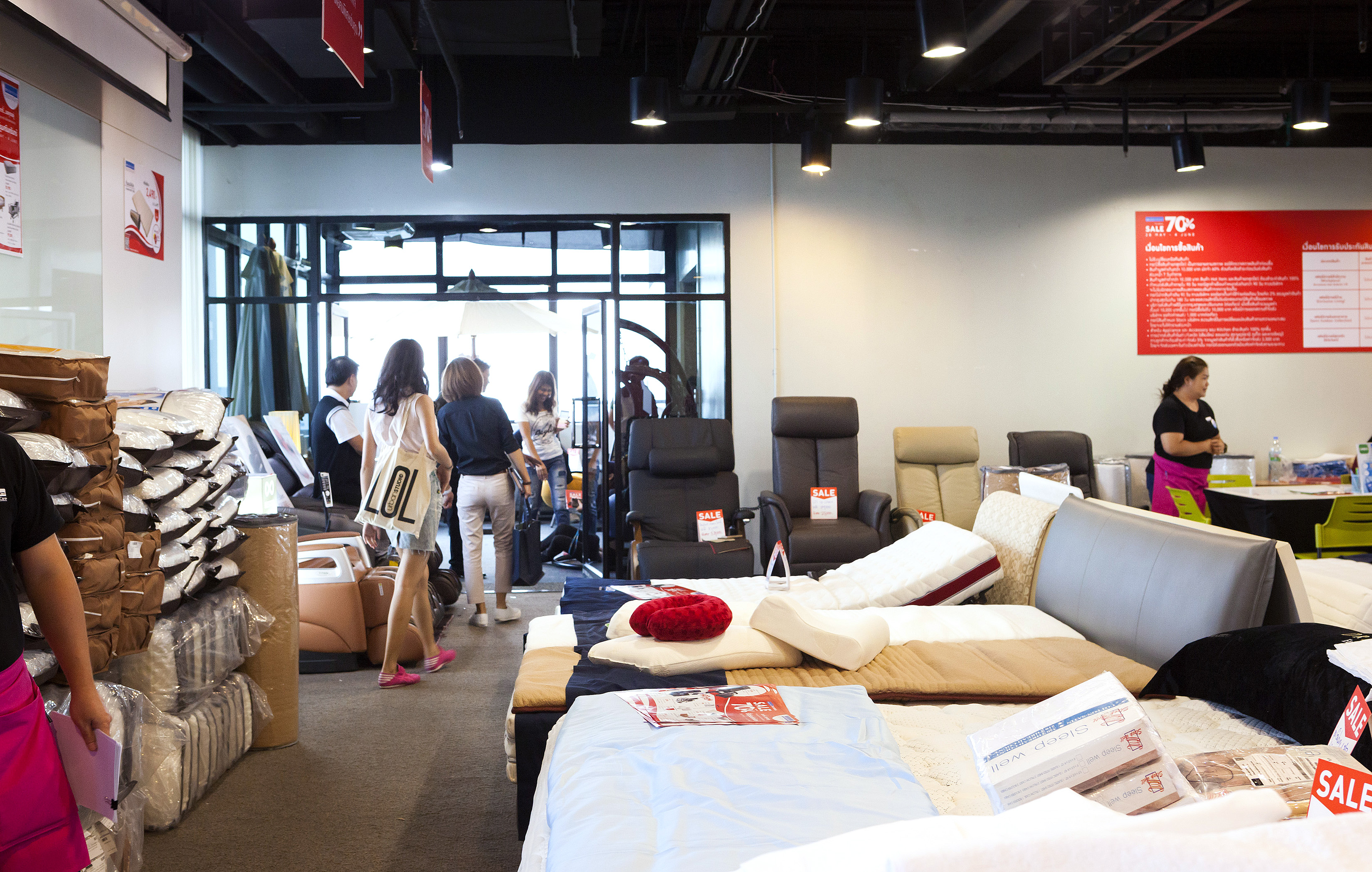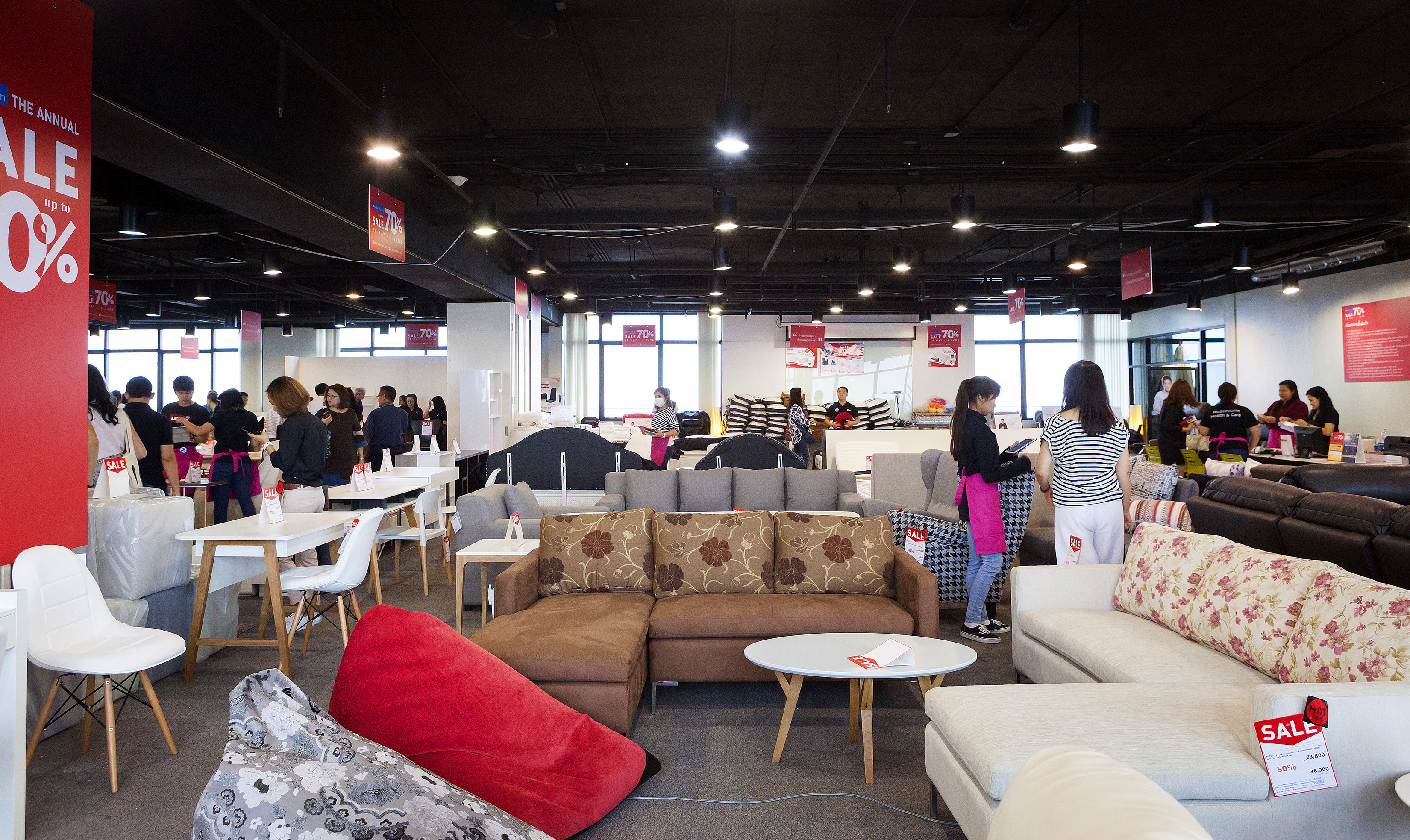 สำหรับใครที่ยังไม่รู้จะเริ่มต้นที่ชั้นไหน หรือยังไม่มีไอเดียการเลือกเฟอร์นิเจอร์ เราอยากให้คุณลองแวะโซน Hot Item บริเวณ ชั้น 1 กันก่อนเลยครับ ซึ่งจะโชว์สินค้าที่ลดราคาสูงสุด 70 % ไว้ที่นี่ ถ้าได้ไอเดียแล้ว ตามมาเลยครับ