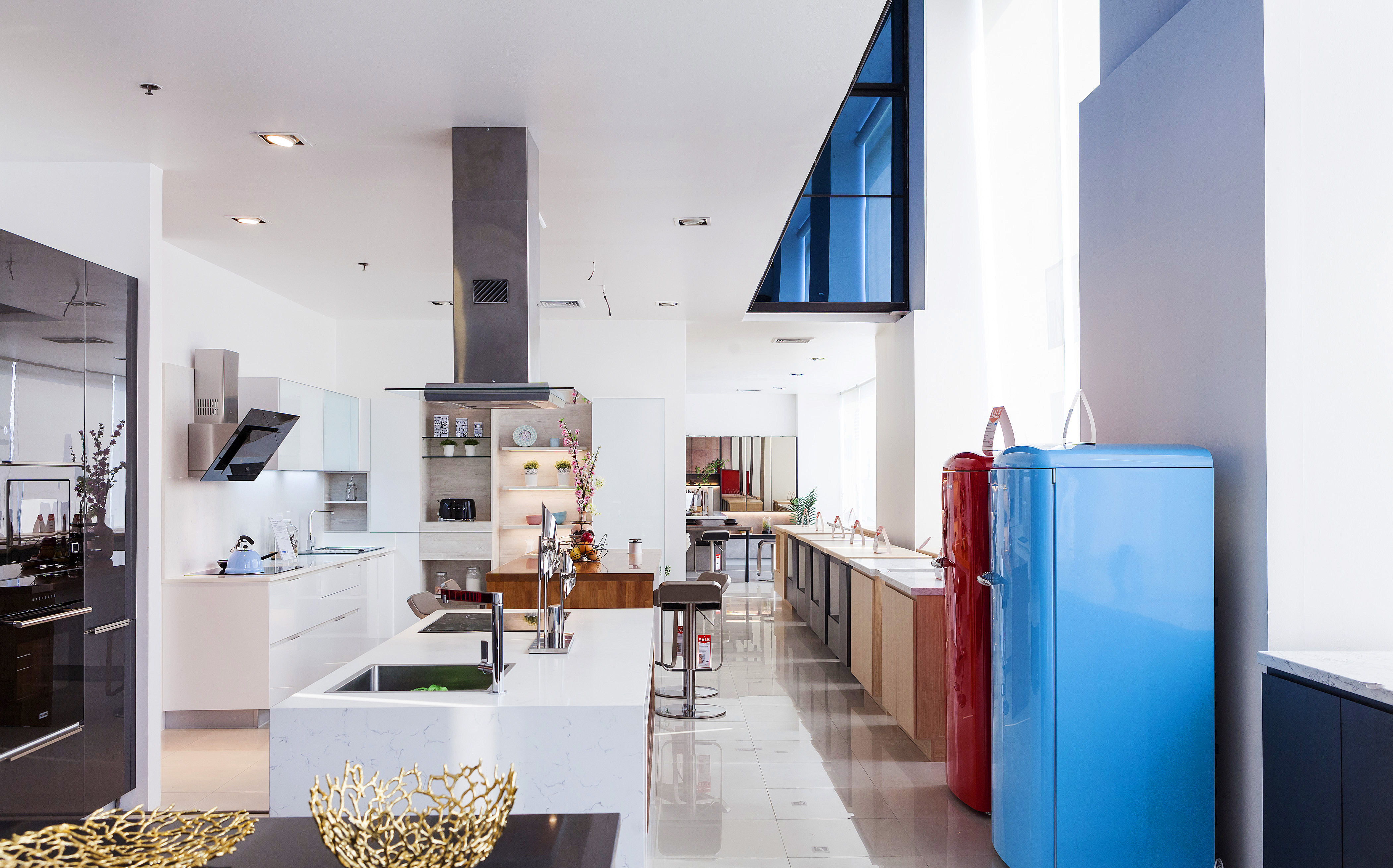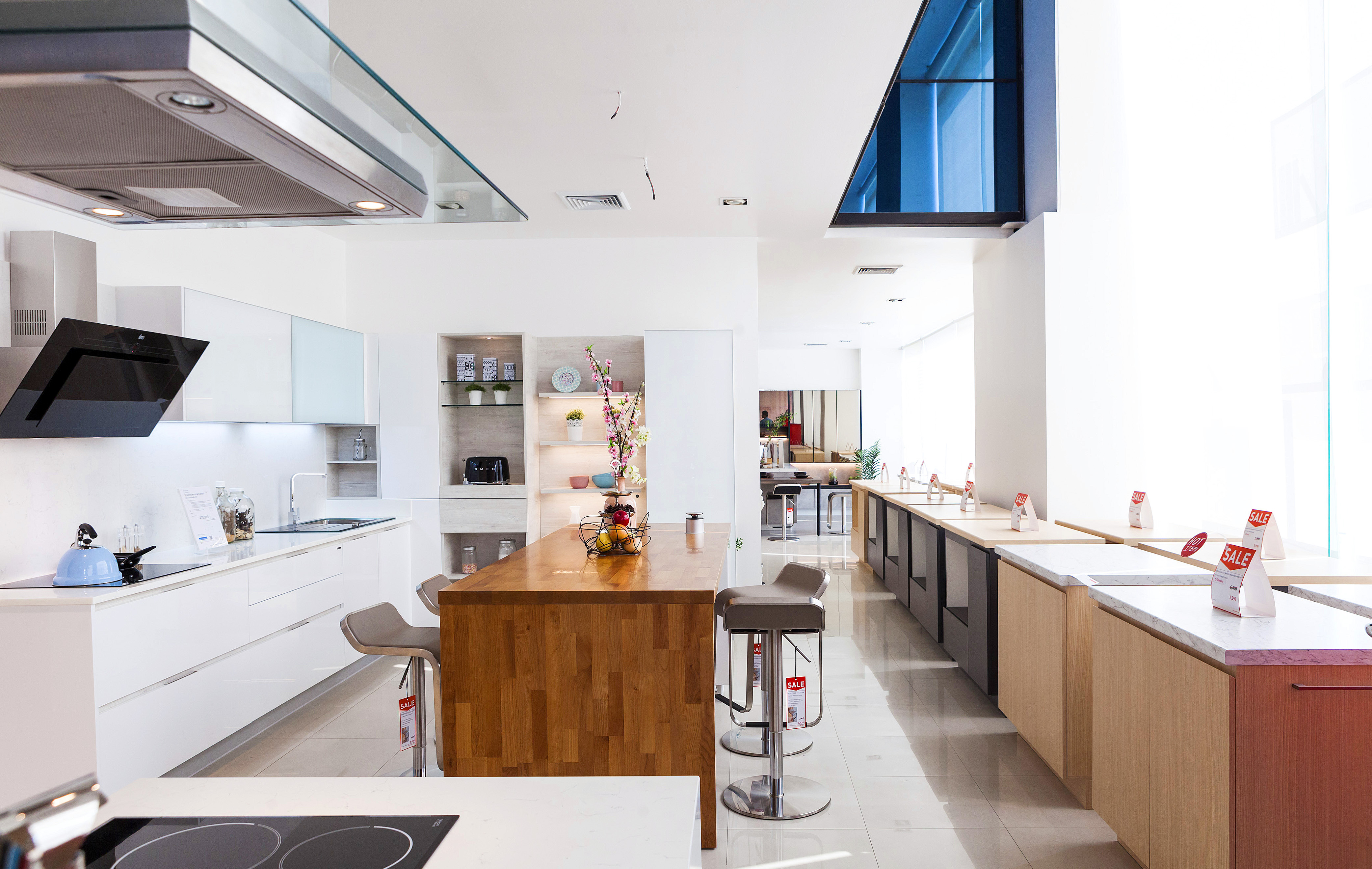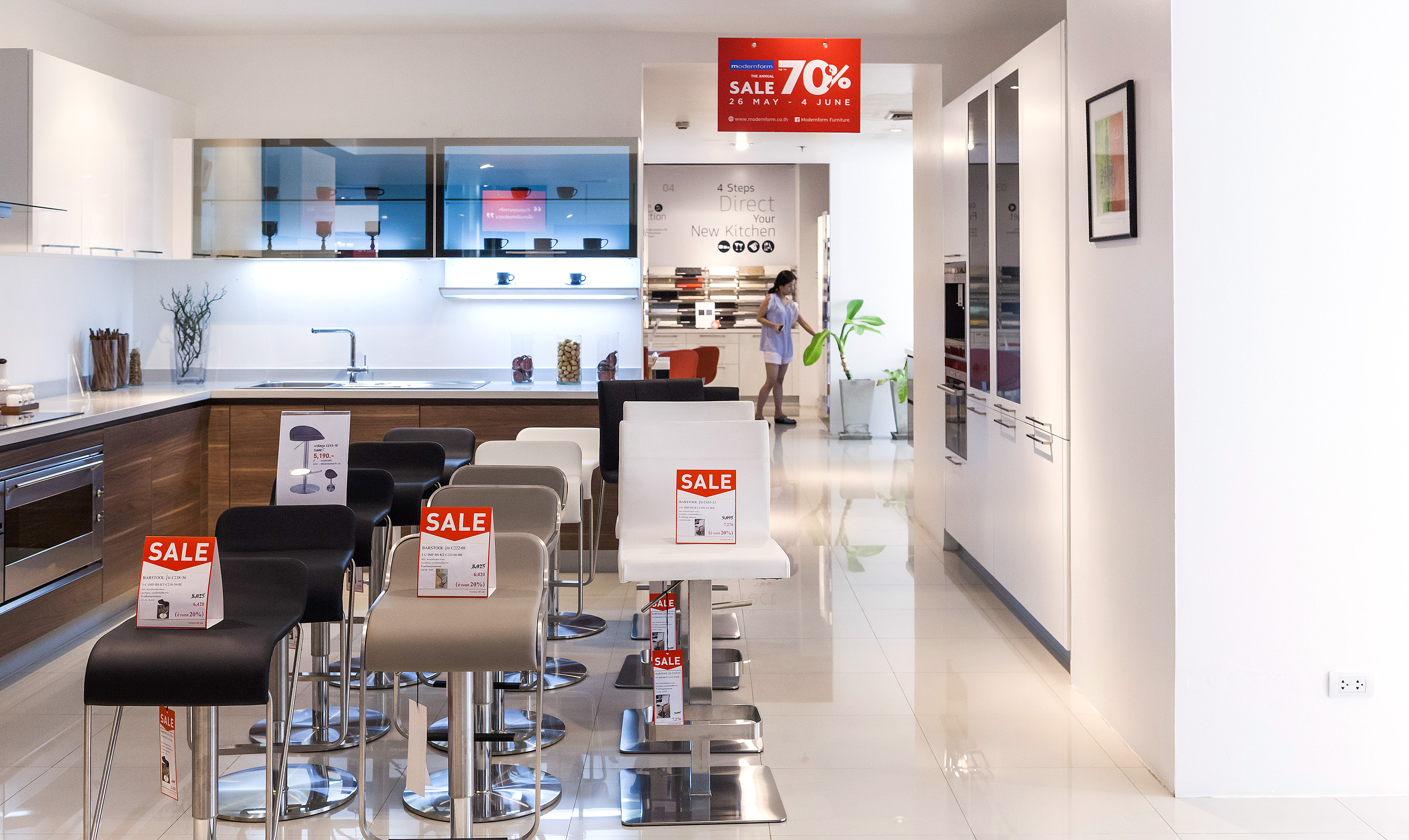 ชุดเครื่องครัวภายในบ้านเป็นอีกหนึ่งสิ่งที่ขาดไม่ได้สำหรับทุกบ้าน ใครที่กำลังมองหาชุดเครื่องครัวมีดีไซน์ พลาดไม่ได้ที่จะต้องแวะบริเวณชั้น 1 นี้ก่อน เพราะมีให้เลือกหลากหลายแบบเหมาะกับบ้านสไตล์ต่างๆ ทั้งแพนทรีเล็กๆ ครัวครบครันแบบ Built in ซึ่งราคาเริ่มต้นอยู่ที่ 15,000 บาท/เมตร ที่พิเศษไปกว่านั้นคือสามารถติดตั้งให้เสร็จได้ภายในหนึ่งวันด้วย แต่ถ้าหากมองหาเฟอร์นิเจอร์แยกชิ้น อย่างตู้เอนกประสงค์ โต๊ะรับประทานอาหาร บาร์สตูล แถมยังมีชุดเตาไฟฟ้าเตาอบไฟฟ้า ตู้เย็นมีดีไซน์ ที่จะมาช่วยอำนวยความสะดวกในการใช้งาน และเสริมลุกให้ครัวสวย โชว์ได้แบบไม่ต้องหลบซ่อน ก็มีให้เลือกหลายแบบเช่นกัน ส่วนสินค้าเพิ่มเติมที่นำมาลดราคาเอาใจกันแบบสุดๆ จะอยู่ที่ชั้น 28 ครับ