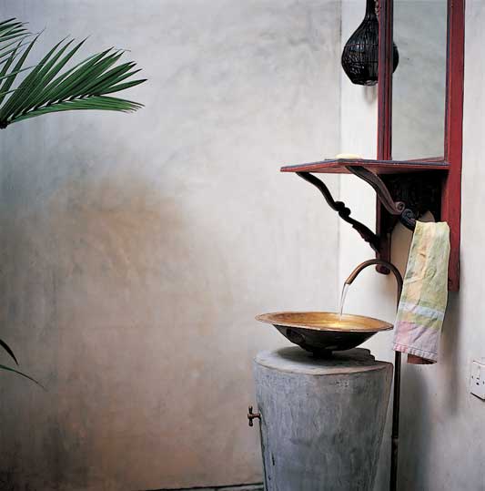 “ผมรู้แต่ว่าบ้านหลังนี้เดิมทีเป็นบ้านพักของนายทหารดัตช์ที่มาประจำการในกอลล์ฟอร์ตเมื่อนานมาแล้ว ตอนซ่อมแซมบ้านสมัยที่เพิ่งซื้อมาใหม่ๆ ผมขุดเจอลูกปืนใหญ่ด้านหลังบ้านด้วย” คำพูดของคุณแจ็คทำให้เราคิดต่อว่าบ้านหลังนี้อาจเคยถูกระเบิดลง เพราะคงไม่มีใครเก็บลูกปืนใหญ่ไว้ใต้พื้นสนามเล่นๆแน่ “ส่วนหน้าของบ้านเป็นแบบเดิม แต่ด้านหลังที่ทำเป็นสองชั้นเป็นส่วนต่อเติมใหม่” แม้จะทำใหม่แต่ก็ออกแบบตกแต่งให้ดูเก่าเข้ากับด้านหน้าได้อย่างกลมกลืน “ผมไม่ใช่นักสะสมของเก่า แต่เพราะมีโอกาสเดินทางและเคยอาศัยอยู่ในหลายประเทศ ก็เลยพอจะมีของติดไม้ติดมือ และได้แรงบันดาลใจมาใช้ในการตกแต่งบ้าน ไม่ว่าจะเป็นประตูไม้จากอินเดียและบาหลี รูปวาดจากฝรั่งเศส ของพื้นเมืองศรีลังกา รวมไปถึงลวดลายสไตล์มัวริช (Moorish) ที่ผมเคยเห็นในโมร็อกโก”