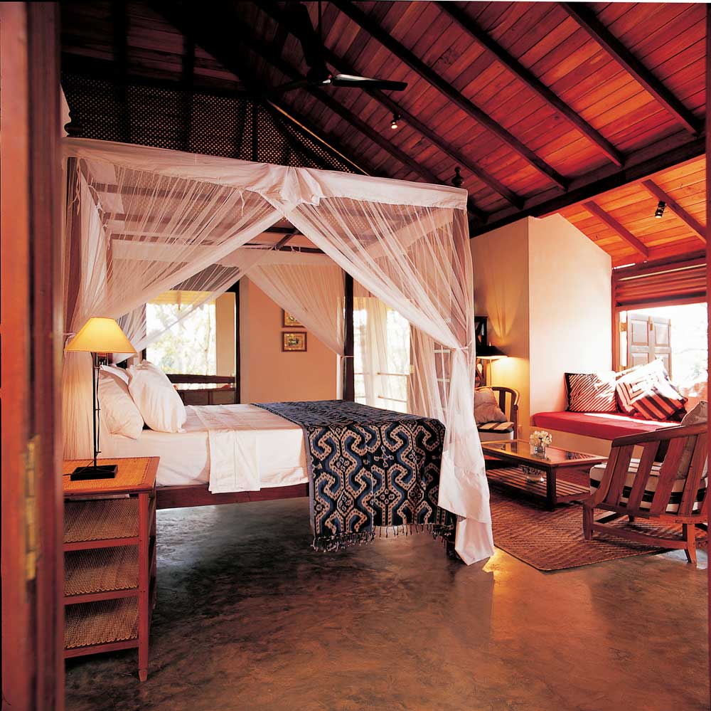 บ้านหลังนี้ประกอบด้วย เรือนนอน 4 หลัง และศาลา 2 หลัง ซึ่งใช้รับแขกและรับประทานอาหาร กลุ่มเรือนนอนสำหรับแขกแยกไปอยู่คนละด้านของกำแพงสีเหลืองกับศาลา เพื่อให้ความเป็นส่วนตัว มีระเบียงนั่งเล่นยื่นออกไปเหนือไร่ชา ส่วนศาลาทั้งสองเปิดโล่งในทุกๆด้าน มีลมเย็นๆพัดผ่านตลอดทั้งวัน และยังมองเห็นทะเลสาบในหุบเขาเบื้องล่าง เรือนนอนและศาลาทุกหลังมุงหลังคากระเบื้อง ผนังฉาบปูนทาสีขาว พื้นเป็นปูนเปลือยขัดมัน เพดานโชว์โครงสร้างไม้ ห้องน้ำทุกห้องเป็นแบบหลังคาเปิด คุณจอร์จ คูเปอร์ เจ้าของบ้านซึ่งเป็นมัณฑนากรชาวอังกฤษเลือกที่จะตกแต่งแบบเบาๆด้วยเฟอร์นิเจอร์ไม้เป็นหลัก เพราะเขาคิดว่าบ้านมีขนาดค่อนข้างใหญ่ และกำแพงสีเหลือก็ดูแรงมากพอแล้ว เขาจึงไม่ต้องการให้การตกแต่งบ้านมาแย่งชิงความเด่นกับธรรมชาติโดยรอบอีก