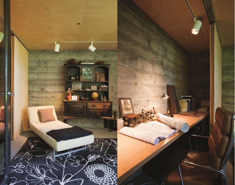 ในห้องสตูดิโอเล็กๆนี้ใช้เฟอร์นิเจอร์บางชิ้นที่ออกแบบบิลท์อินโดยเจ้าของบ้าน โดยใช้ไม้สีโทนอ่อนและดีไซน์เรียบๆ ขนาดพอเหมาะ ไม่สูงใหญ่จนเกินไป ผสมผสานกับเฟอร์นิเจอร์ลอยตัวทั้งแบบโมเดิร์นสมัยใหม่และคลาสสิก