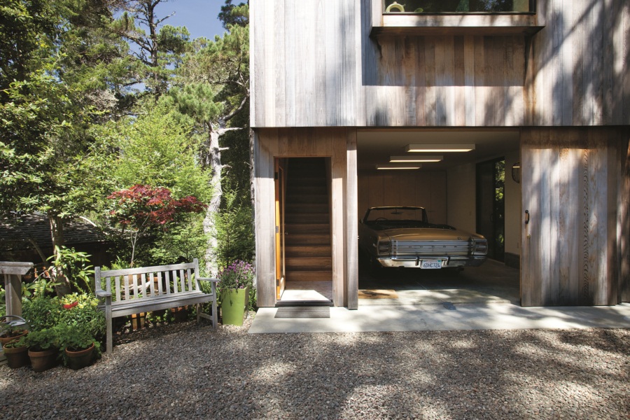 ตัวบ้านออกแบบให้สวยแบบโมเดิร์นตามสมัย แต่ยังคงเอกลักษณ์บางอย่างของบ้านสไตล์ Sea Ranch แบบดั้งเดิมไว้ ทำให้โรงจอดเล็กๆหลังนี้ดูน่าสนใจ ไม่ต่างจากบ้านหลังแรกของเขาเลย