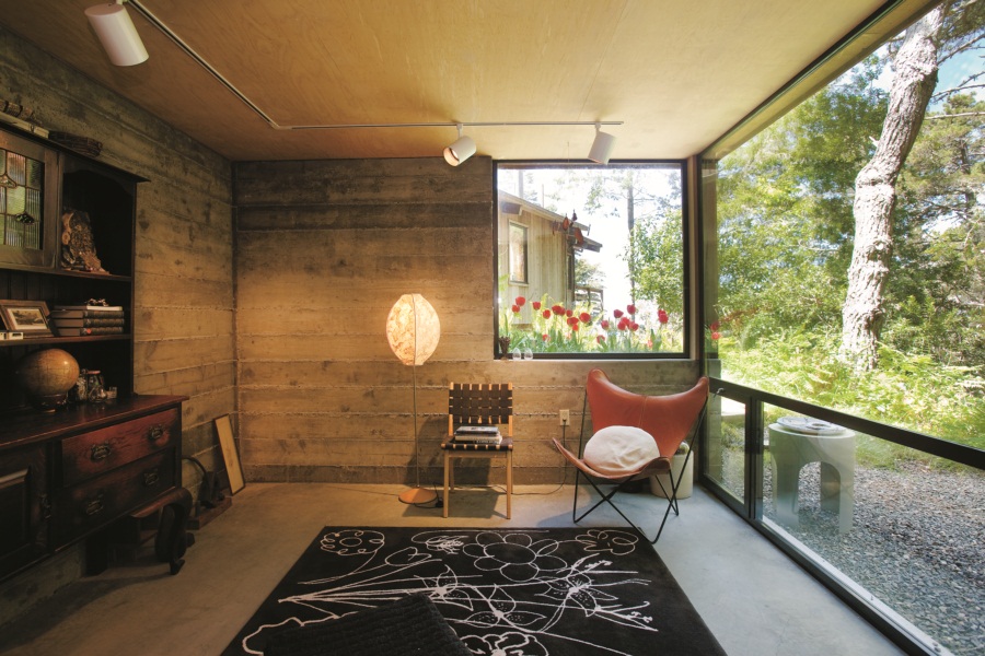 บ้านไม้เล็กๆ หลังนี้ดูภายนอกเหมือนเป็นแค่โรงจอดรถ หรือห้องเก็บของหลังบ้าน เพราะปลูกอยู่ในบริเวณ “บ้านโมเดิร์นไม้…พื้นถิ่น” บ้านสวยจากเมือง Sea Ranch รัฐแคลิฟอร์เนีย ประเทศสหรัฐอเมริกา ซึ่งเราเคยพาชมในนิตยสารบ้านและสวนฉบับเดือนตุลาคม 2554 Mr. Peter Jenny เจ้าของบ้านและสถาปนิก เล่าให้ฟังว่า