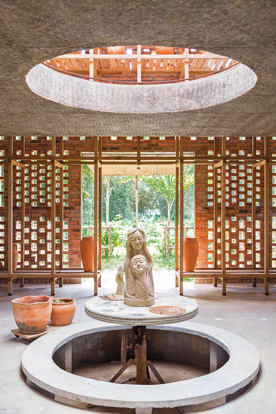 TS: “โดยปกติเราจะไม่ทุ่มเทเวลาหรืองบประมาณมากนักในการสรรหาวัสดุก่อสร้าง เพราะเราพบว่าวัสดุที่พร้อมใช้งานและมีราคาคุ้มค่านั้นมีความเหมาะสมในการใช้งานมากกว่า ในเวียดนามอิฐและคอนกรีตเป็นวัสดุที่ได้รับความนิยมมาก เราจึงเลือกใช้วัสดุทั้งสองชนิดเป็นหลัก เพราะเชื่อว่าสามารถสร้างสรรค์พื้นที่ต่าง ๆ ได้หลากหลายรูปแบบ ทั้งยังมีเสน่ห์เมื่ออยู่ท่ามกลางแสงเงาธรรมชาติ”