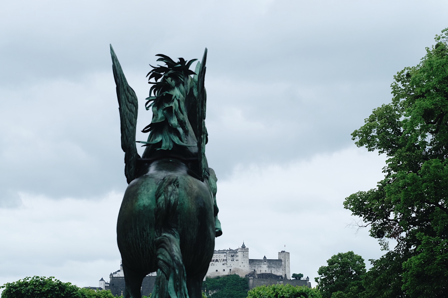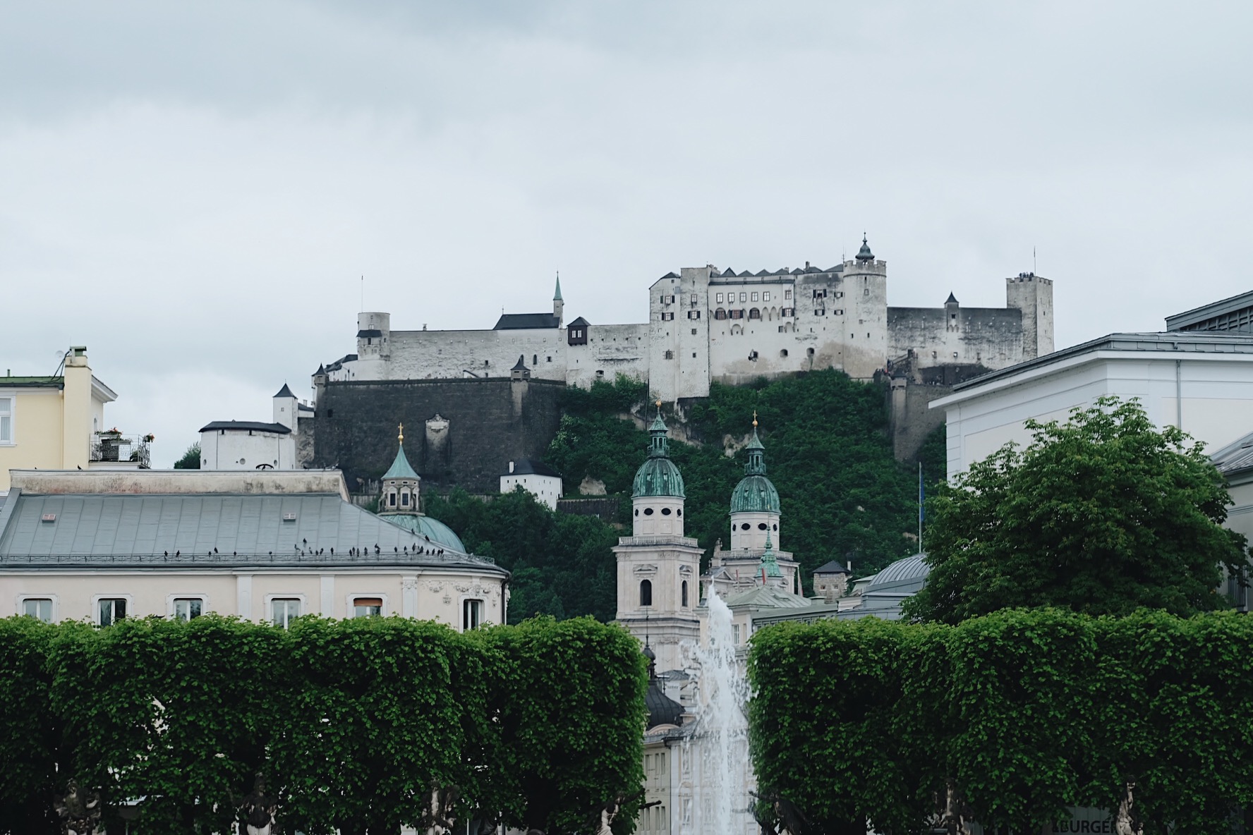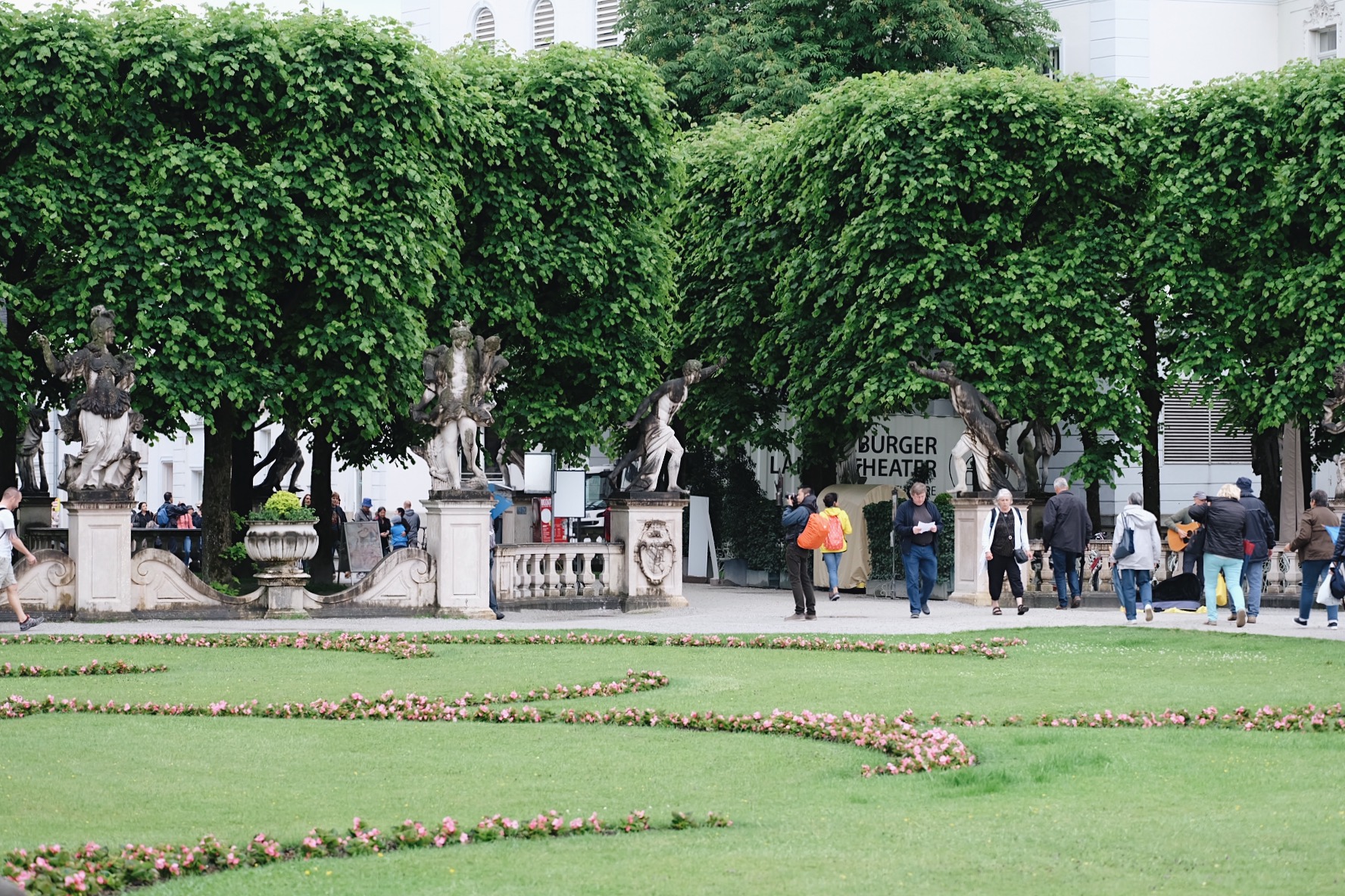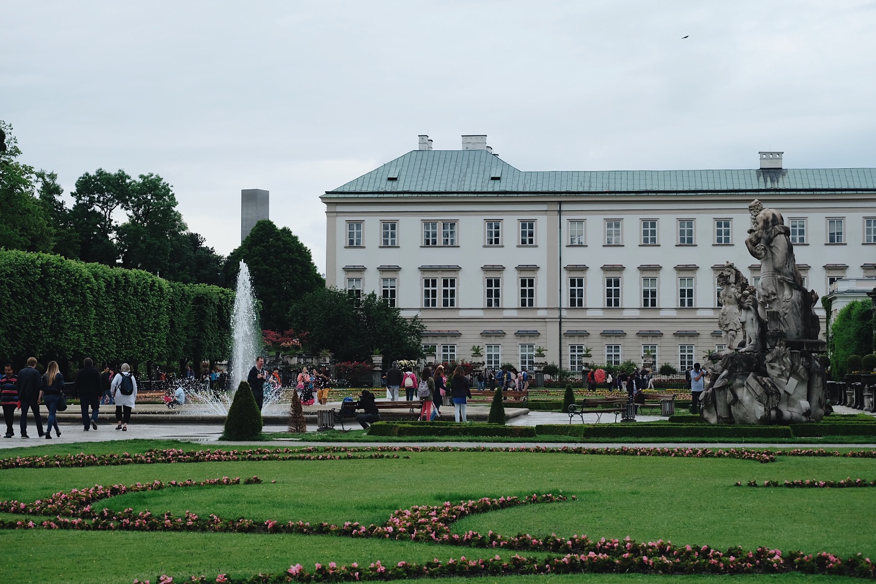 และเมื่อมองไปยังฝั่งเมืองเก่า จะเห็นฉากหลังเป็นยอดวิหารและป้อมปราการ Hohensalzburg บนยอดเขา ฉากหน้าสวยงามด้วยน้ำพุและขั้นบันไดในสวน ชวนให้นึกถึงฉากครูมาเรียกับเด็กๆ 7 คน กระโดดโลดเต้นอย่างร่าเริงในสวนกับบทเพลง De Re Mi ในภาพยนตร์เรื่อง The Sound Of Music ช่วยให้บรรยากาศของสวนแห่งนี้มีเรื่องราวที่น่าจดจำมากขึ้น