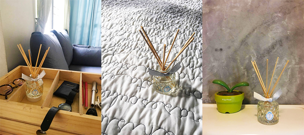 วิธีสุดท้ายเป็นวิธีที่ไฮไลต์ที่ช่วยให้บ้านละมุนไปด้วยความหอม เติมกลิ่นหอมในบ้านแบบธรรมชาติ ได้ด้วยการเลือกใช้น้ำหอมปรับอากาศ “Suteki” จากญี่ปุ่น ที่มาพร้อมกลิ่นหอมแบบพรีเมียม เพราะสกัดหอมระเหยแบบพิเศษจากดอกไม้และผลไม้ ความพิเศษอยู่ที่ตัวก้านไม้หอม ที่คุณสามารถกำหนดความแรงของกลิ่นตามจำนวนก้านจึงหมดกังวลเรื่องกลิ่นฉุนรุนแรงที่อาจทำร้ายคุณ โดยกลิ่นที่เราอยากแนะนำให้คุณทดสอบความละมุนก็คือ Suteki Plus Stick Jasmine Marriage (สีฟ้า) กับกลิ่นที่หอมแบบสุภาพละเอียดอ่อน ละมุนละไม เหมาะกับห้องนั่งเล่น หรือห้องรับแขก ที่พร้อมต้อนรับคุณเป็นห้องแรกๆในบ้าน และ Suteki Plus Stick Antique Cherry (สีม่วง) กลิ่นที่แสนโรแมนติก มีเสน่ห์ ลุ่มลึกชวนหลงไหล เหมาะกับห้องที่ต้องการบรรยากาศของการผ่อนคลายอย่างห้องนอน วิธีใช้ก็แสนง่ายแค่เติมน้ำมันอโรม่าลงในขวด และนำก้านไม้หอมเสียบลงในขวด ตั้งทิ้งไว้สักพัก ก้านไม้จะซึมซับน้ำหอมและส่งกลิ่นไปทั่วๆห้องแบบอ่อนโยนยาวนานถึง 2 เดือน* ให้คุณเริ่มต้นวันใหม่แบบสดใสละมุนไปกับกลิ่นหอมๆของน้ำหอมค่ะ