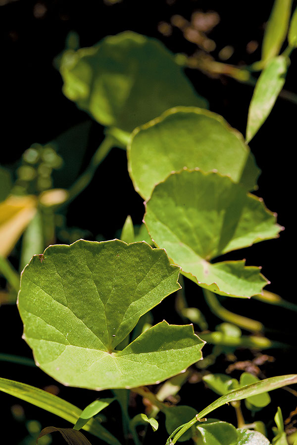 บัวบก (หรือผักหนอก) เป็นไม้คลุมดินที่สูงประมาณ 5-10 เซนติเมตร ใบรูปกลมหยักตรงโคน รับประทานได้ มีคุณค่าทางสมุนไพร คั้นสดดื่มดี ชอบแสงจัดและดินชุ่มชื้นสูง เหมาะจะปลูกชายน้ำ ริมน้ำ แผ่ไหลได้รวดเร็ว จึงใช้คลุมพื้นผิวได้ดีมาก