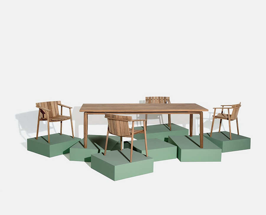 “Batten” เก้าอี้เอ้าท์ดอร์ที่เพิ่งชนะการประกวดครบรอบ 40 ปีของแบรนด์ดังอย่าง Tectona (Tectona’s 40th anniversary competition) จากแรงบันดาลใจแรกสังเกตการใช้งานเก้าอี้ไม้แบบเอ้าท์ดอร์ จากรูปทรงที่คุ้นตา เช่น การใช้ไม้ระแนงเว้นร่อง เป็นคาแรกเตอร์งานไม้ที่เราเห็นบ่อยจนชินตา จึงนำมาต่อยอดด้วยการออกแบบ ปรับระยะระหว่างไม้ ให้เท่ากันตลอดทั้งชิ้น มีความเนี้ยบและสวยงามในทุกแนวร่อง สร้างความคอนทราสต์ด้วยขาไม้กลึงกลม เพื่อช่วยให้ที่นั่งไม้ยิ่งดูเรียบเด่นขึ้น
