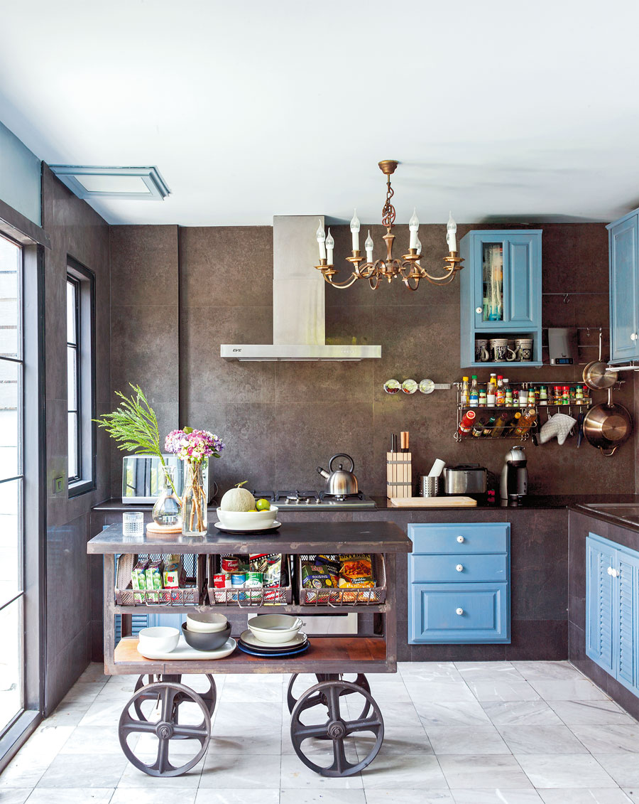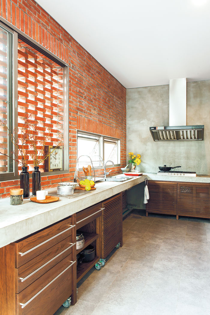 อย่าไปกลัวหากมีพื้นที่มีจำกัด พื้นที่ครัว เล็กๆก็มีการใช้งานครัวที่ครบครันได้ เพียงแค่คิดถึงการใช้งานแบบสามเหลี่ยมไว้เสมอ ได้แก่ ส่วนปรุง ส่วนล้าง และส่วนเก็บ จะหมุนแบบไหนก็ได้ แต่ต้องมีการใช้งานทั้งสามอย่างนี้ครบ ที่สำคัญพื้นที่ระหว่างแต่ละส่วนควรมีไม่ต่ำกว่า 45 เซนติเมตร เพื่อความปลอดภัยและใช้งานสะดวก นอกจากนี้ไม่จำเป็นว่าครัวจะต้องตายตัวเสมอไป ลองออกแบบครัวให้สามารถปรับเปลี่ยนหรือย้ายได้ เช่น เคาน์เตอร์ติดล้อ ก็สามารถปรับการใช้งานได้หลากหลาย เช่น เปลี่ยนเป็นเคาน์เตอร์เคลื่อนที่ยามมีปาร์ตี้ ส่วนใครที่ไม่อยากให้เห็นความวุ่นวายของแพนทรี่ ลองออกแบบป็นประตูบานเลื่อนขนาดใหญ่สำหรับเปิด-ปิดส่วนครัว เมื่อไม่มีการใช้งานก็กลายเป็นผนังธรรมดา และเปิดใช้งานได้อย่างดียามมีแขกมาเยือน