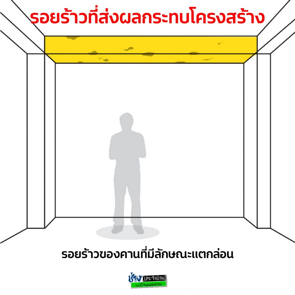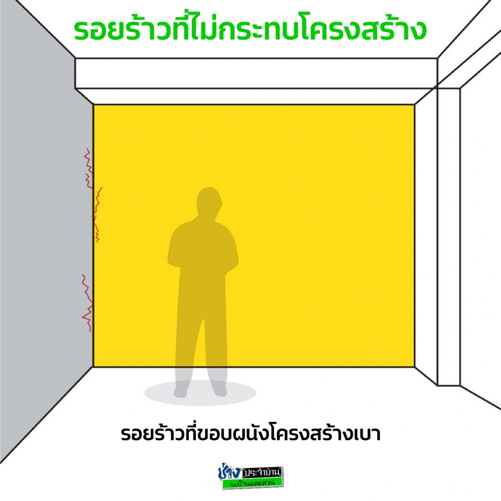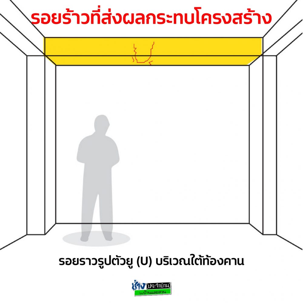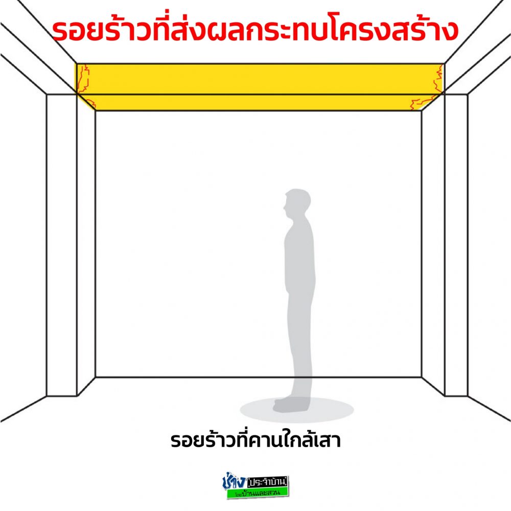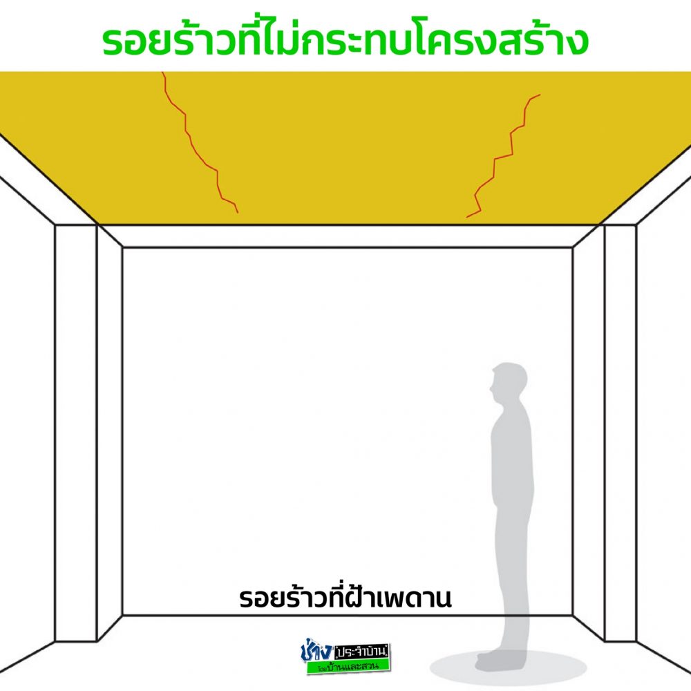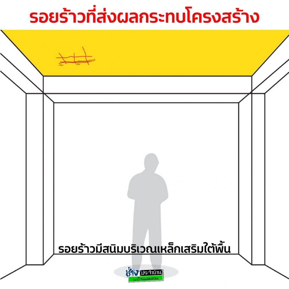 ข้อควรระวัง – ควรพิจารณารอยร้าวว่าลามไปถึงแนวคานแล้วหรือยัง เพื่อแก้ไขให้ถูกต้อง ไม่ลุกลามไปมากกว่าเดิม