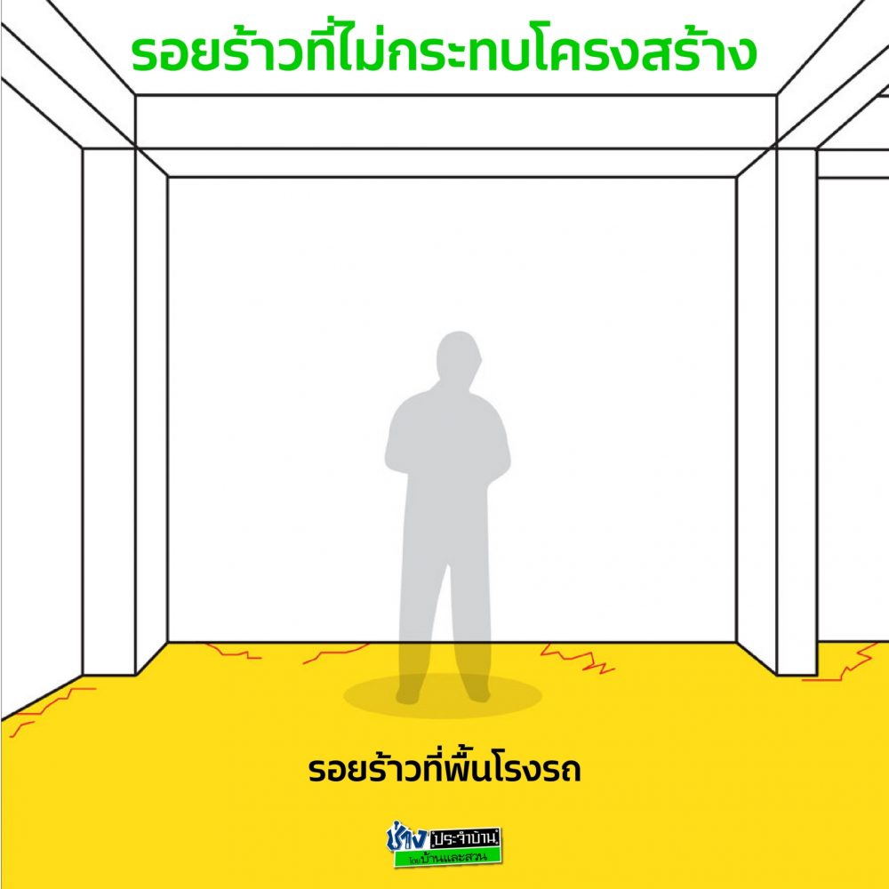 วิธีแก้ – ให้นำน้ำหนักที่อยู่บนพื้นออกจากพื้นที่ร้าวเสียก่อน