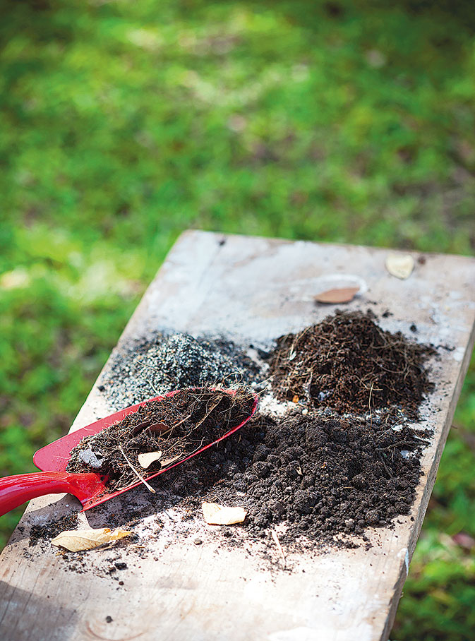 การปลูกพืชในกระถาง รากพืชจะถูกจำกัดขอบเขตให้อยู่เฉพาะภายในกระถางเท่านั้น ดังนั้นเพื่อให้พืชเจริญเติบโตได้ดี ดินหรือวัสดุปลูกจะต้องมีคุณสมบัติ ดินโปร่งร่วน น้ำหนักเบา ระบายน้ำได้ดี อากาศถ่ายเทได้สะดวก ดูดซับน้ำ มีธาตุอาหารที่พืชต้องการสมบูรณ์ ไม่มีความเป็นกรดเป็นด่างมากเกินไป แน่นพอที่จะยึดให้ลำต้นทรงตัวอยู่ได้ และไม่มีสารเคมีที่เป็นพิษต่อรากพืชเจือปนอยู่