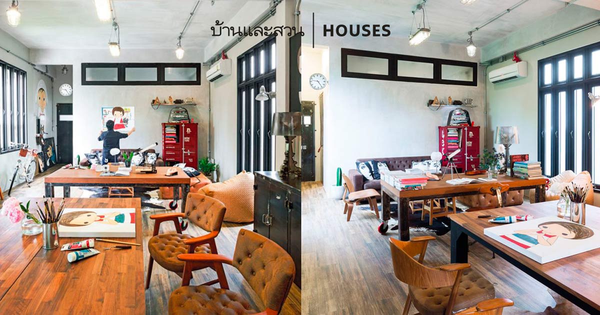 คุณอุ้ม ปีกเหล็ก เจ้าของบ้านเป็นผู้ออกแบบและตกแต่ง โฮมสตูดิโอขนาดเล็ก นี้เองทั้งหมด เพื่อให้เป็นทั้งบ้านพักอาศัย สตูดิโอทำงาน ห้องเรียนศิลปะ และพื้นที่ให้เช่า ดังนั้นฟังก์ชันภายในบ้านจึงต้องพร้อมปรับเปลี่ยนและเคลื่อนย้ายได้ตามต้องการ พร้อมกับมีพื้นที่กลางแจ้งสำหรับรองรับกิจกรรมนอกบ้าน