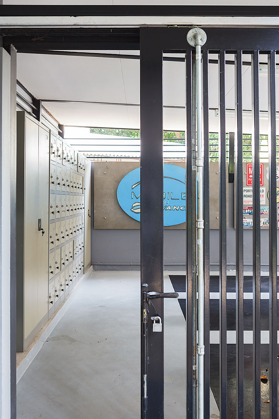 เมื่อเข้ามาในบริเวณบ้าน เราเห็นการนำวัสดุที่ดูเรียบง่ายมาดัดแปลงใช้งานด้วยวิธีพิเศษ เริ่มตั้งแต่ป้ายเลขที่บ้านซึ่งเป็นงานโลหะสั่งทำพิเศษ รั้วเหล็กที่ใช้เมทัลชีตวางในแนวนอน ทำให้ได้ลวดลายเก๋ๆ และผนังกรุแผ่นสังกะสีประดับงานปั้นโลหะ ส่วนภายในบ้านก็โดดเด่นด้วยการนำภาพวาดสวยๆมาเป็นองค์ประกอบหลักในการตกแต่ง ซึ่งเป็นความตั้งใจของคุณน้อยที่อยากให้บ้านมีบรรยากาศกึ่งๆแกลเลอรี่